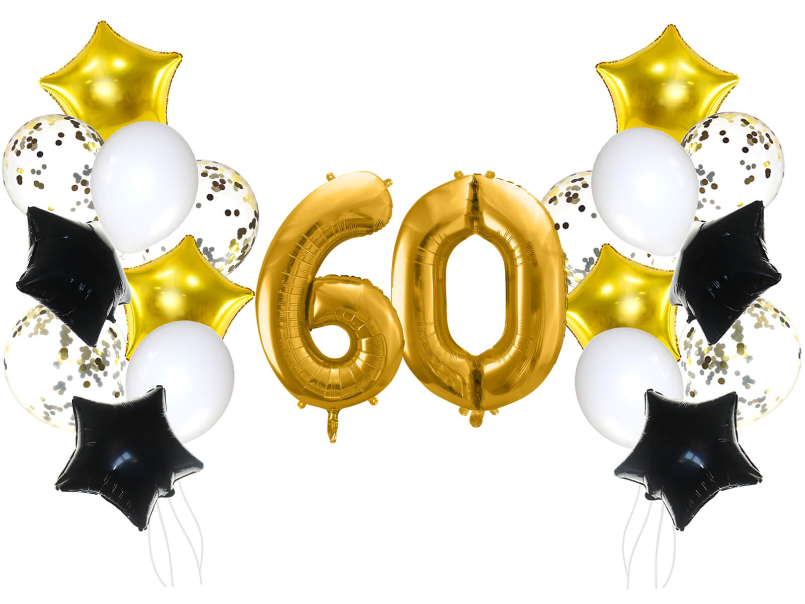 Zestaw balonów na sześćdziesiątkę złoto-czarny - 21 szt.