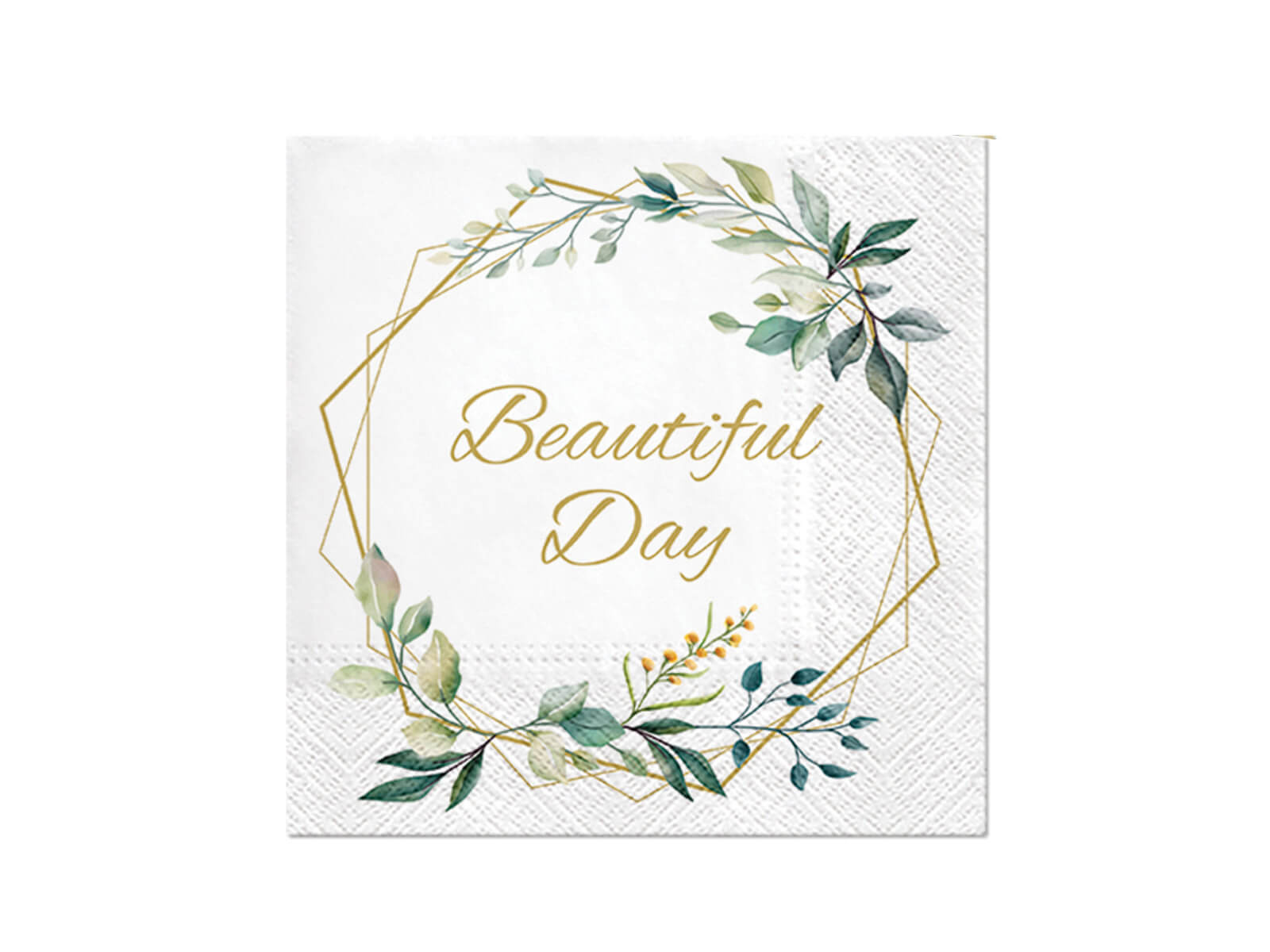 Serwetki weselne Beautiful Day z listkami - 33 cm - 20 szt.