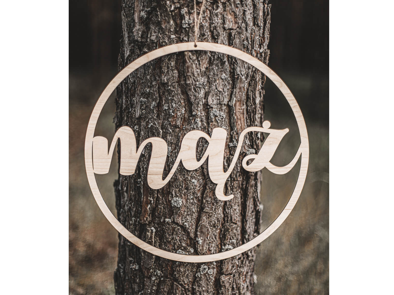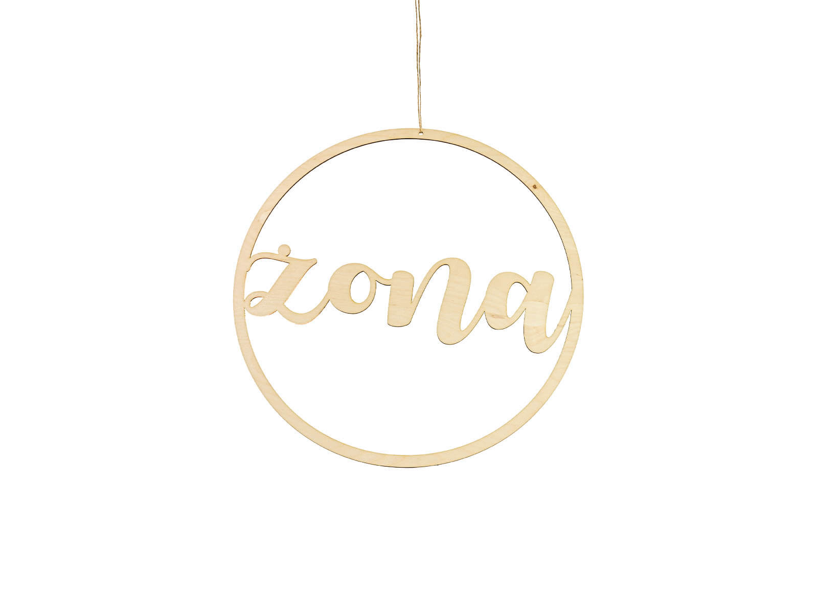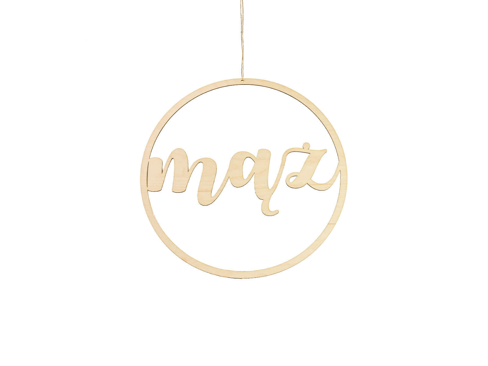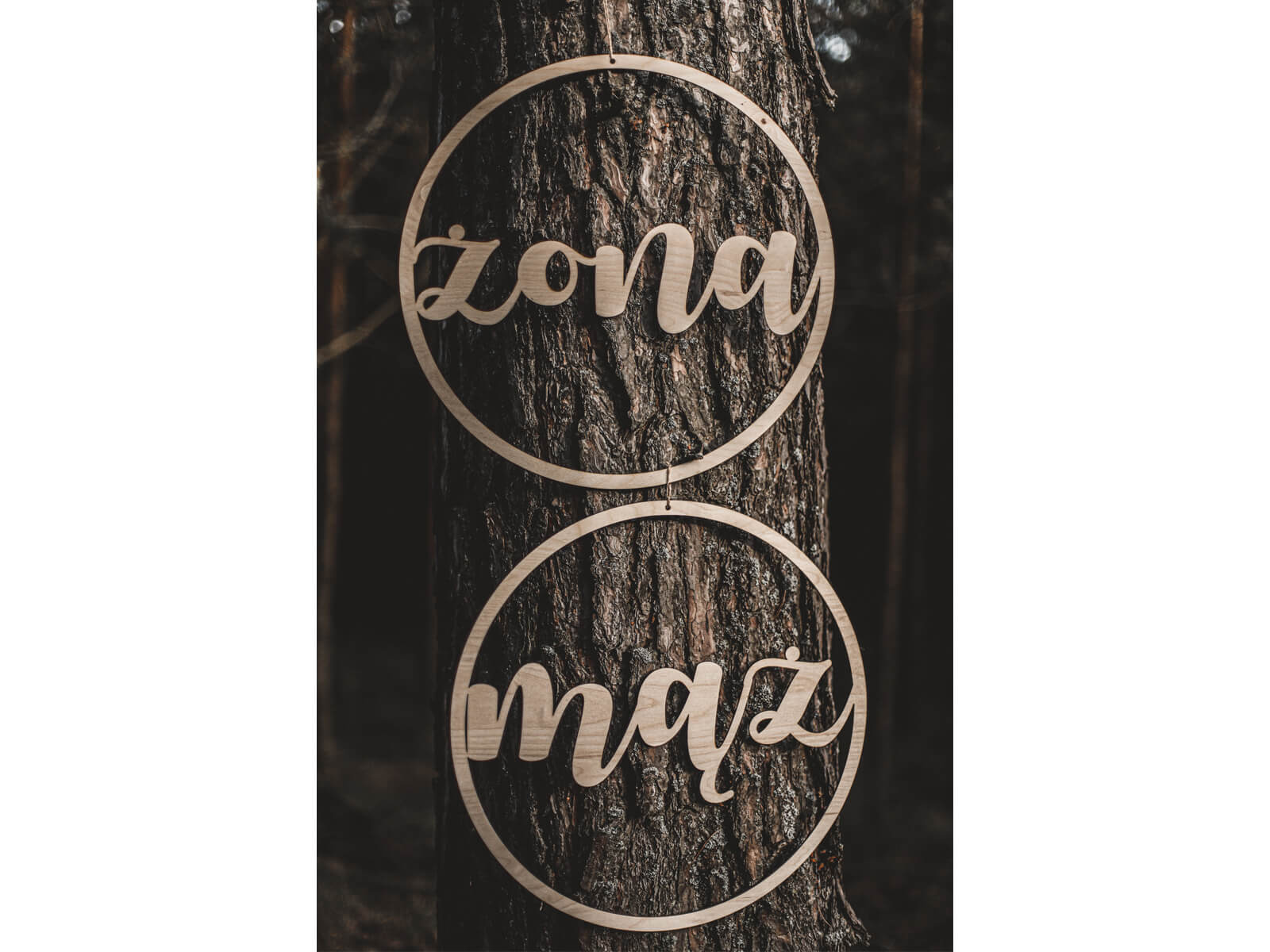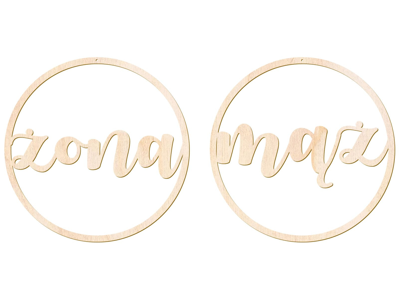 Duże zawieszki obręcze drewniane Żona Mąż - 44 cm - 2 szt.