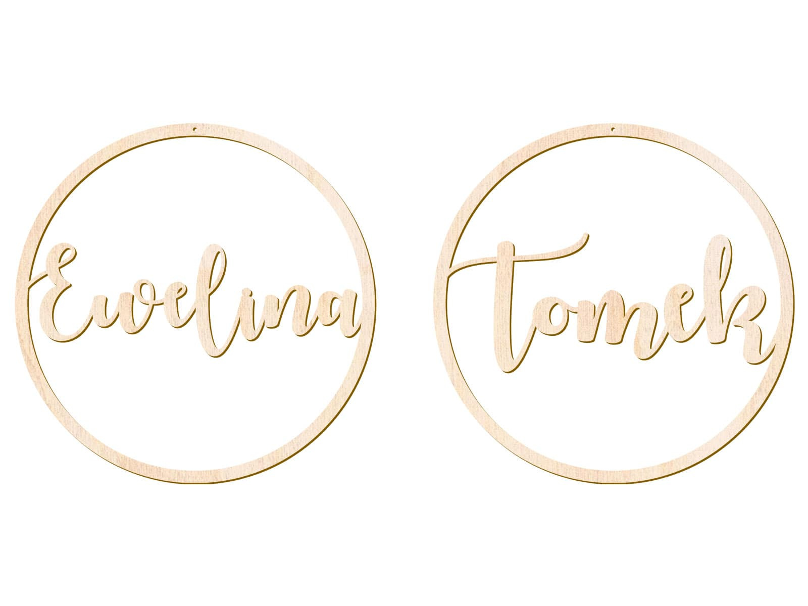 Duże zawieszki obręcze drewniane personalizowane - 44 cm - 2 szt.