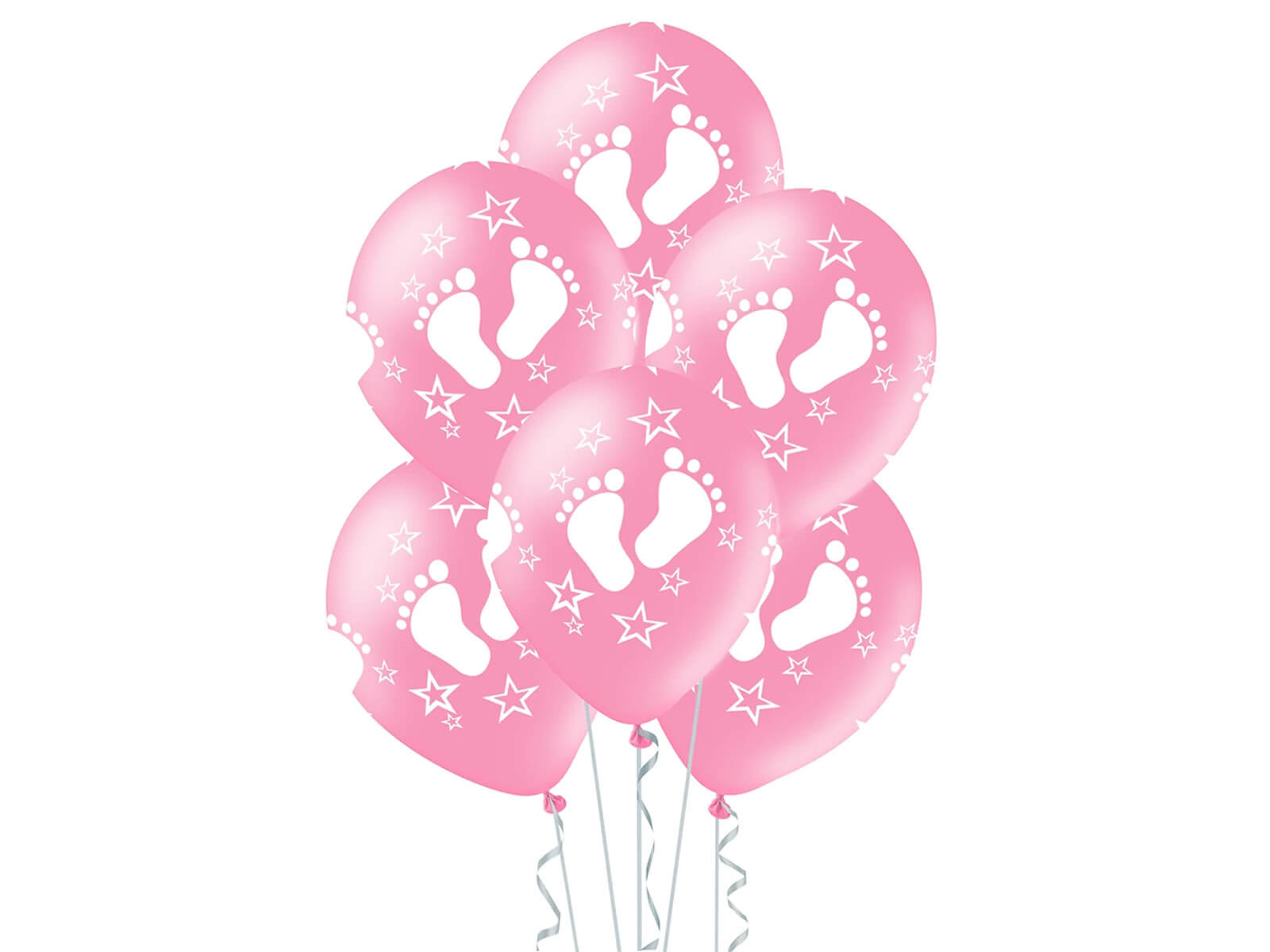 Balony lateksowe Stópki na baby shower dla dziewczynki - 30 cm - 6 szt.