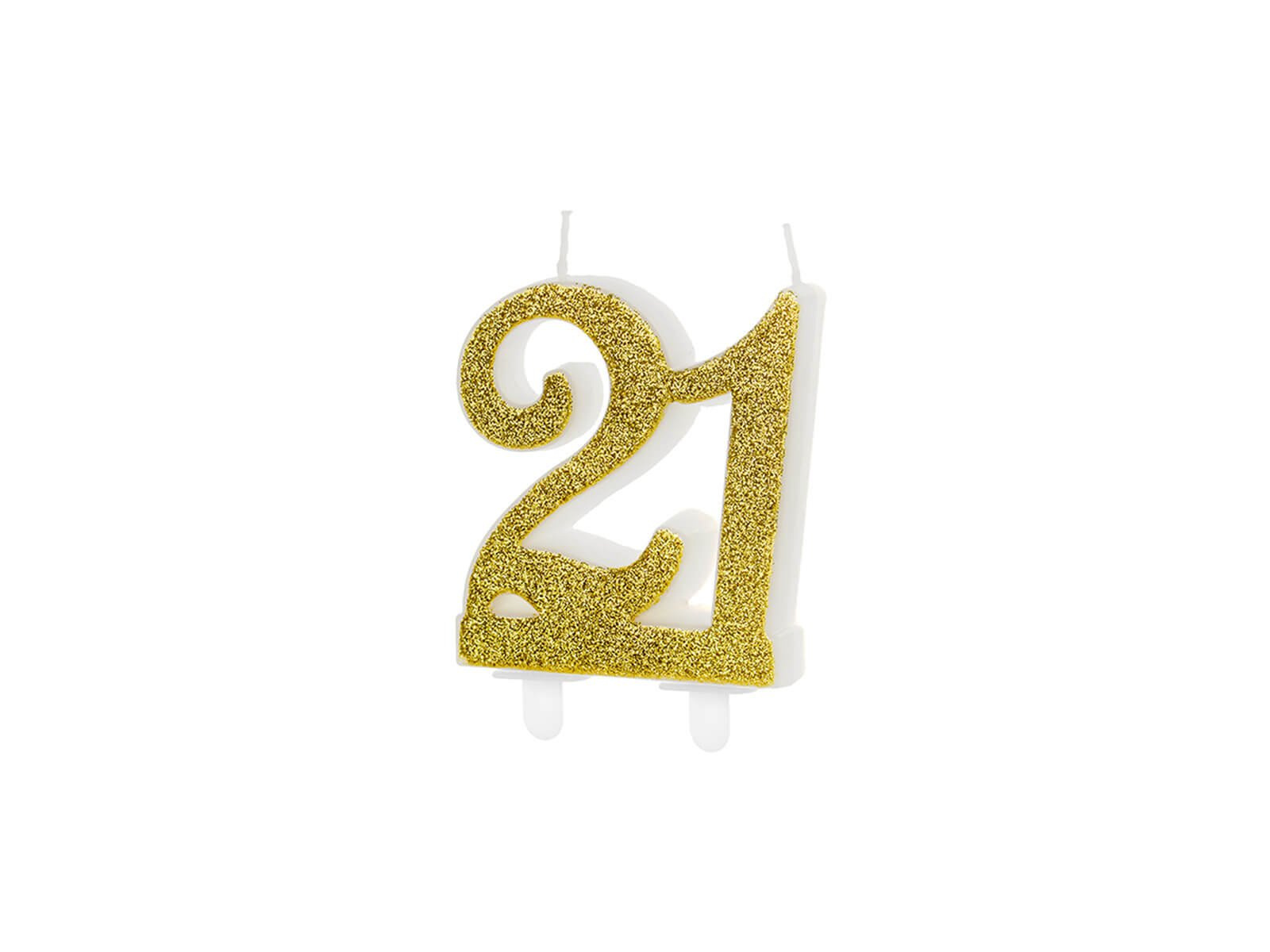 Świeczka cyferka 21 ze złotym brokatem - 1 szt.