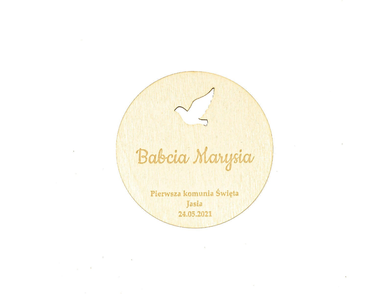 Winietki personalizowane drewniane z gołąbkiem - 6 szt.