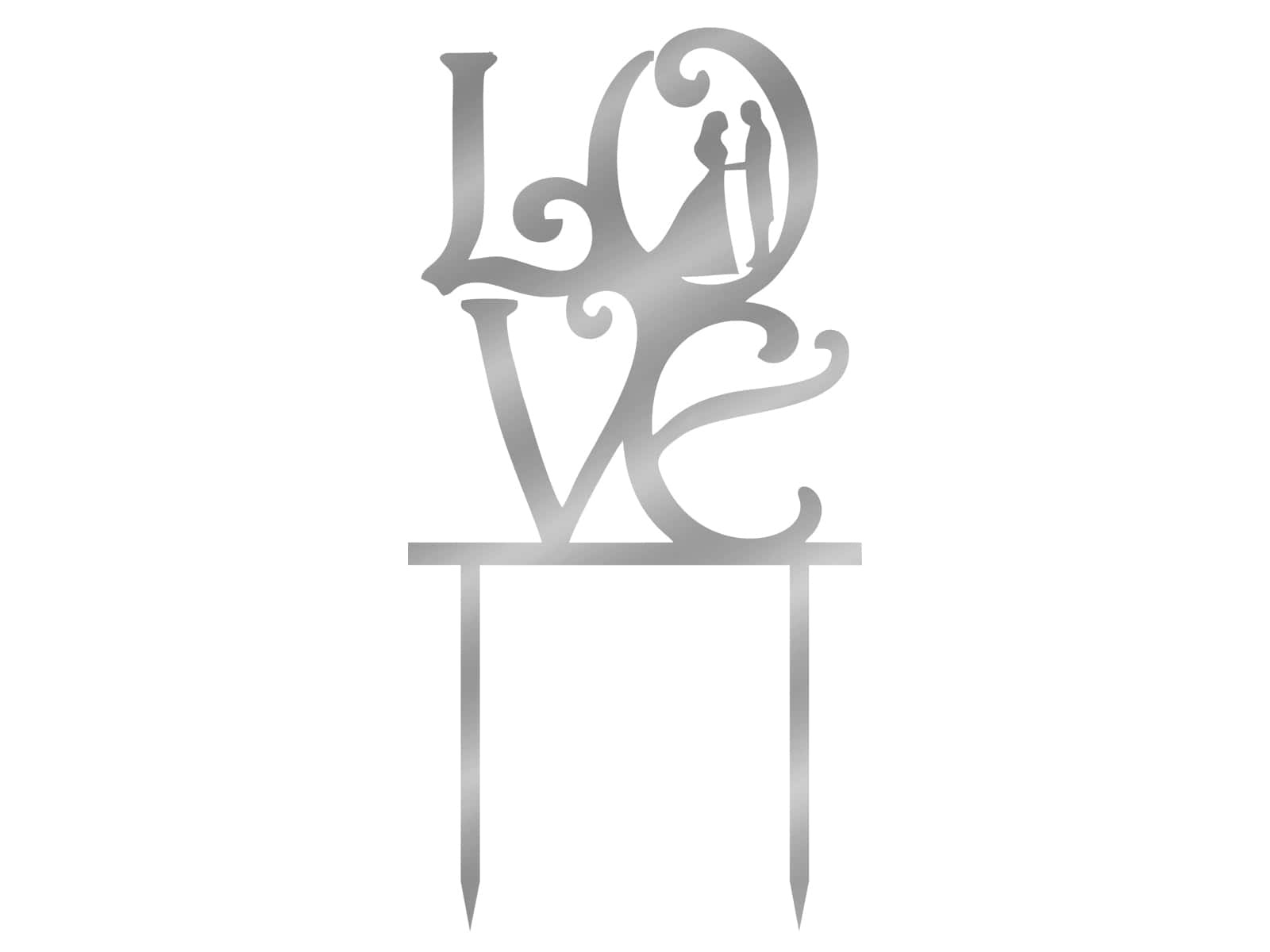 Topper z lustrzanej pleksi srebrny na tort Love - 15,5 cm