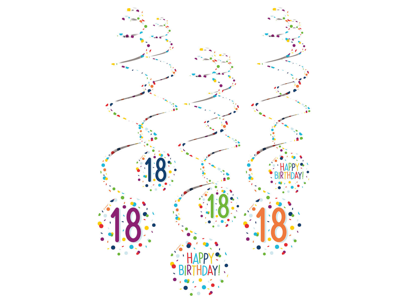 Dekoracja wisząca świderki na osiemnastkę Konfetti - 6 szt.