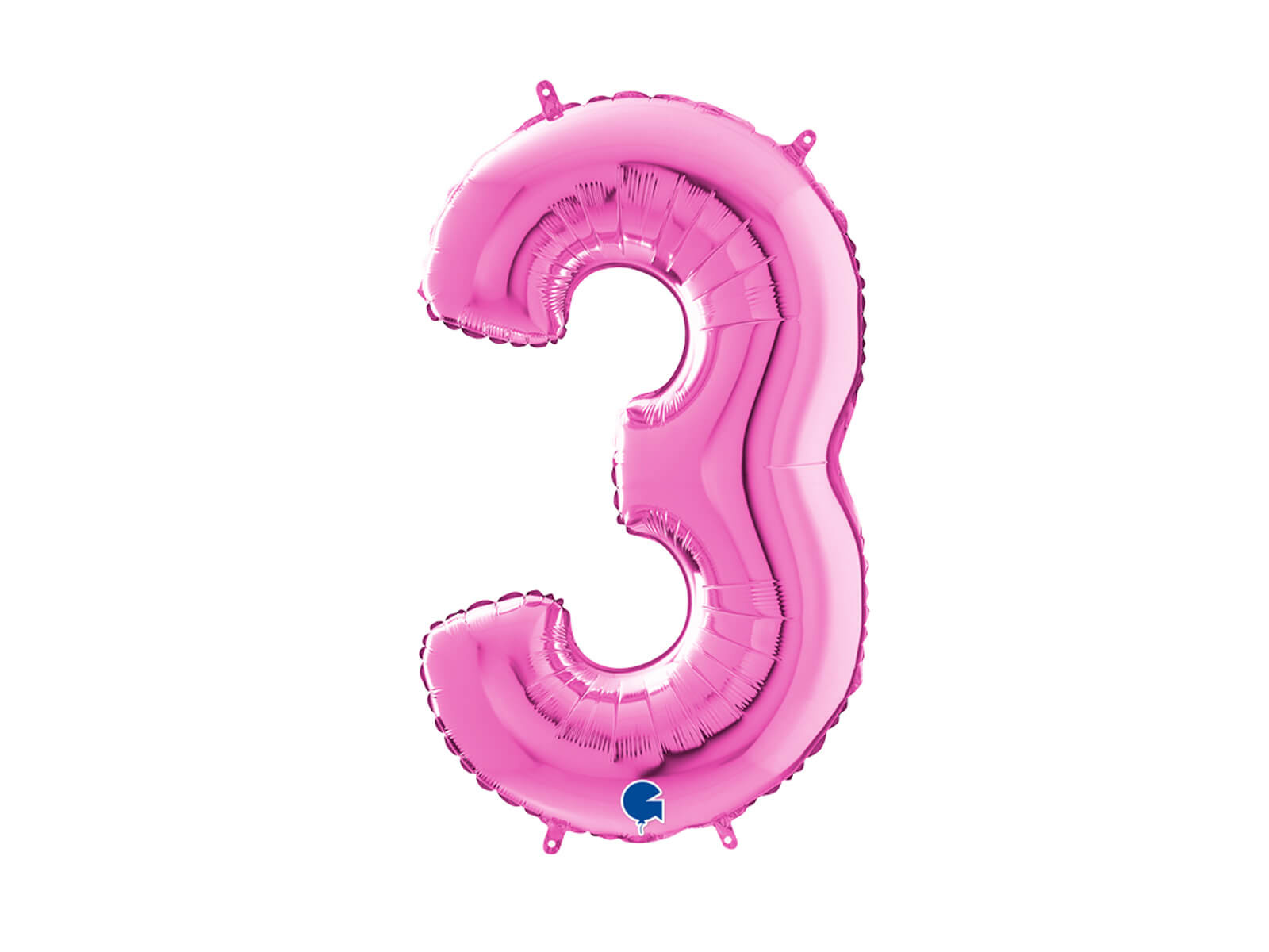 Balon foliowy cyfra 3 fuksjowa - 66 cm - 1 szt.