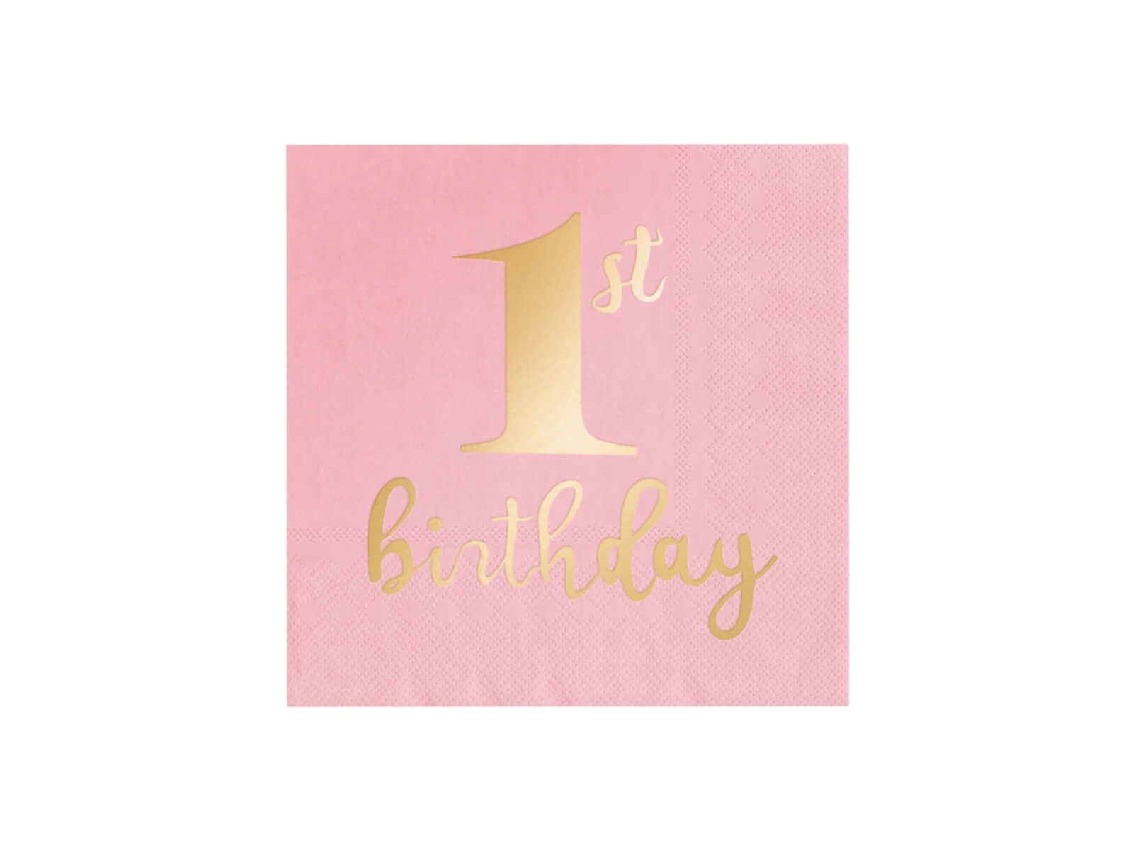 Serwetki urodzinowe na roczek 1st Birthday różowe - 33 cm - 10 szt.