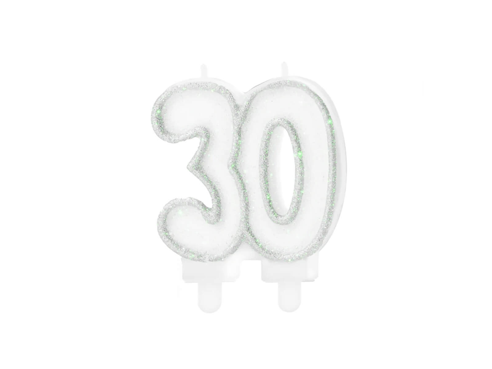 Świeczka na trzydziestkę brokatowa srebrna - 8,5 cm - 1 szt.