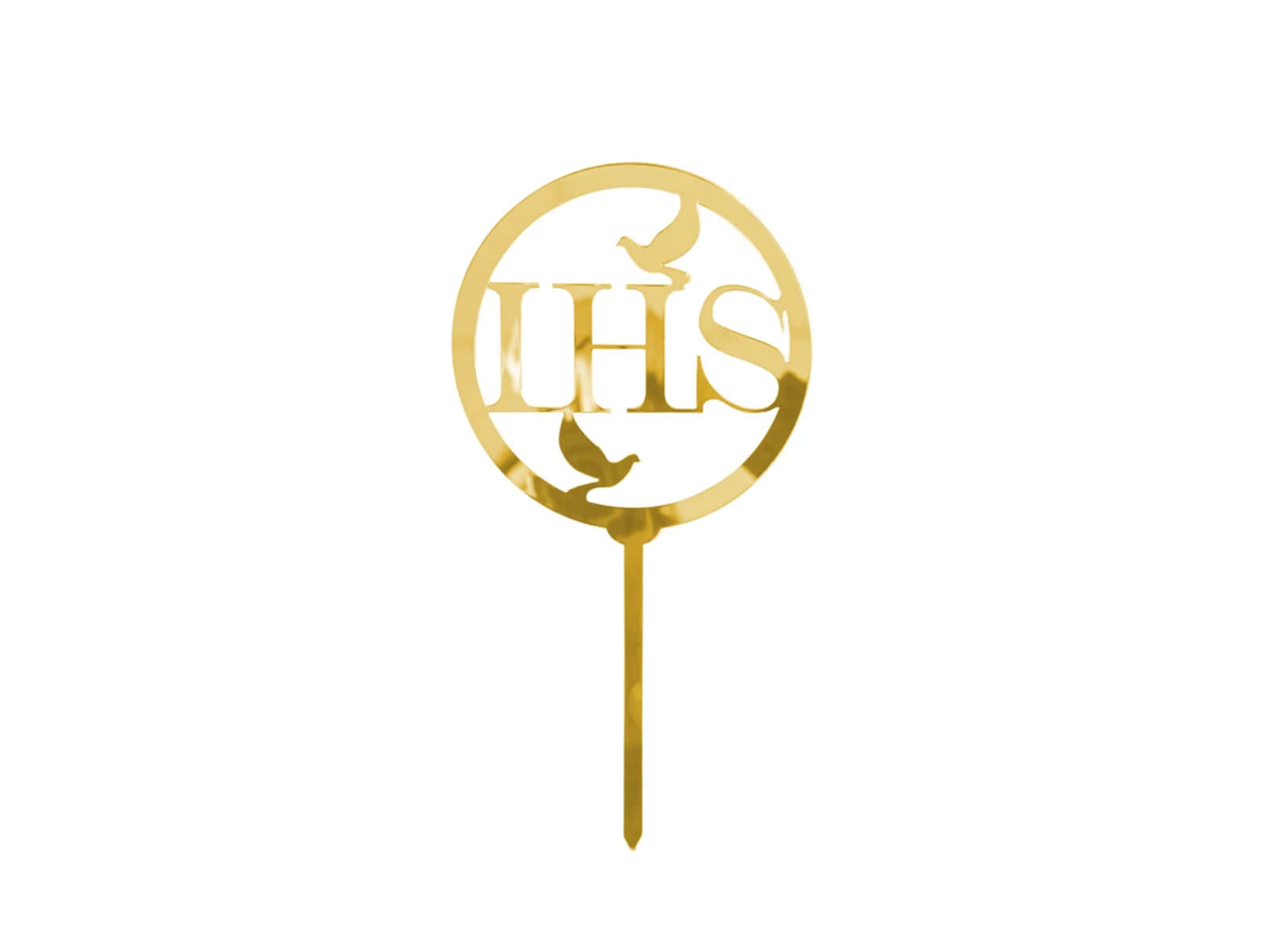 Topper na tort IHS złoty z pleksi - 1 szt.