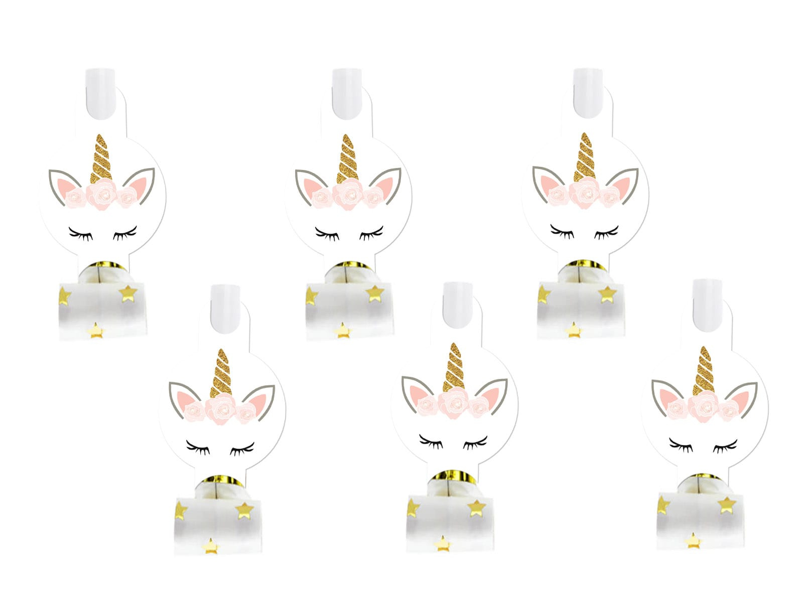 Gwizdki trąbki rozwijane piękny jednorożec - 6 szt