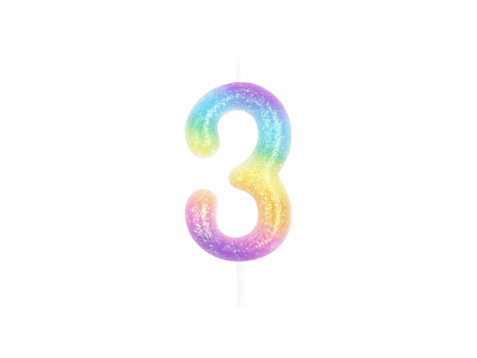 Świeczka cyferka kolorowa ombre - 3 - trzy
