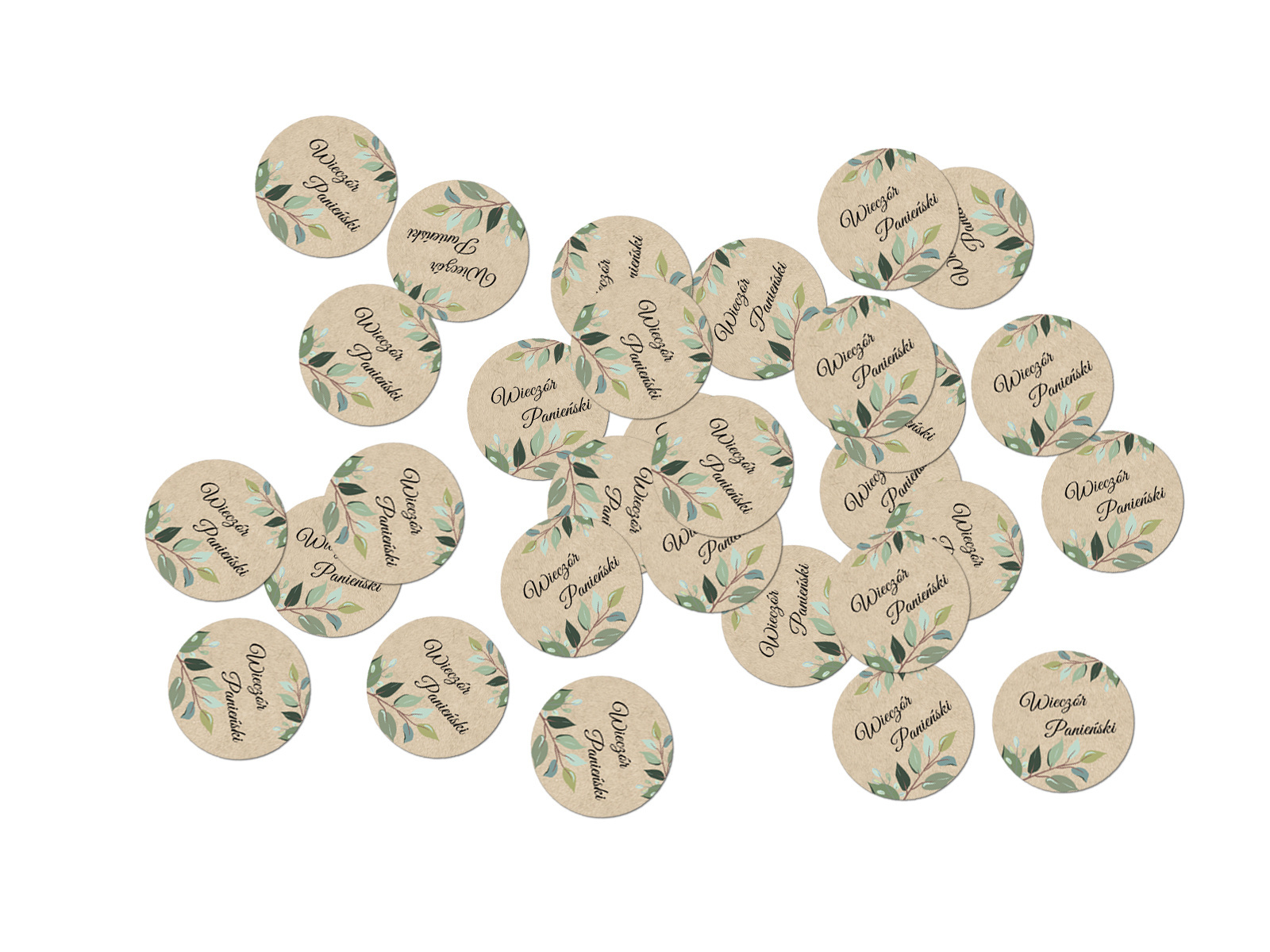 Konfetti na wieczór panieński z zielonymi listkami kraftowe - 36 szt.