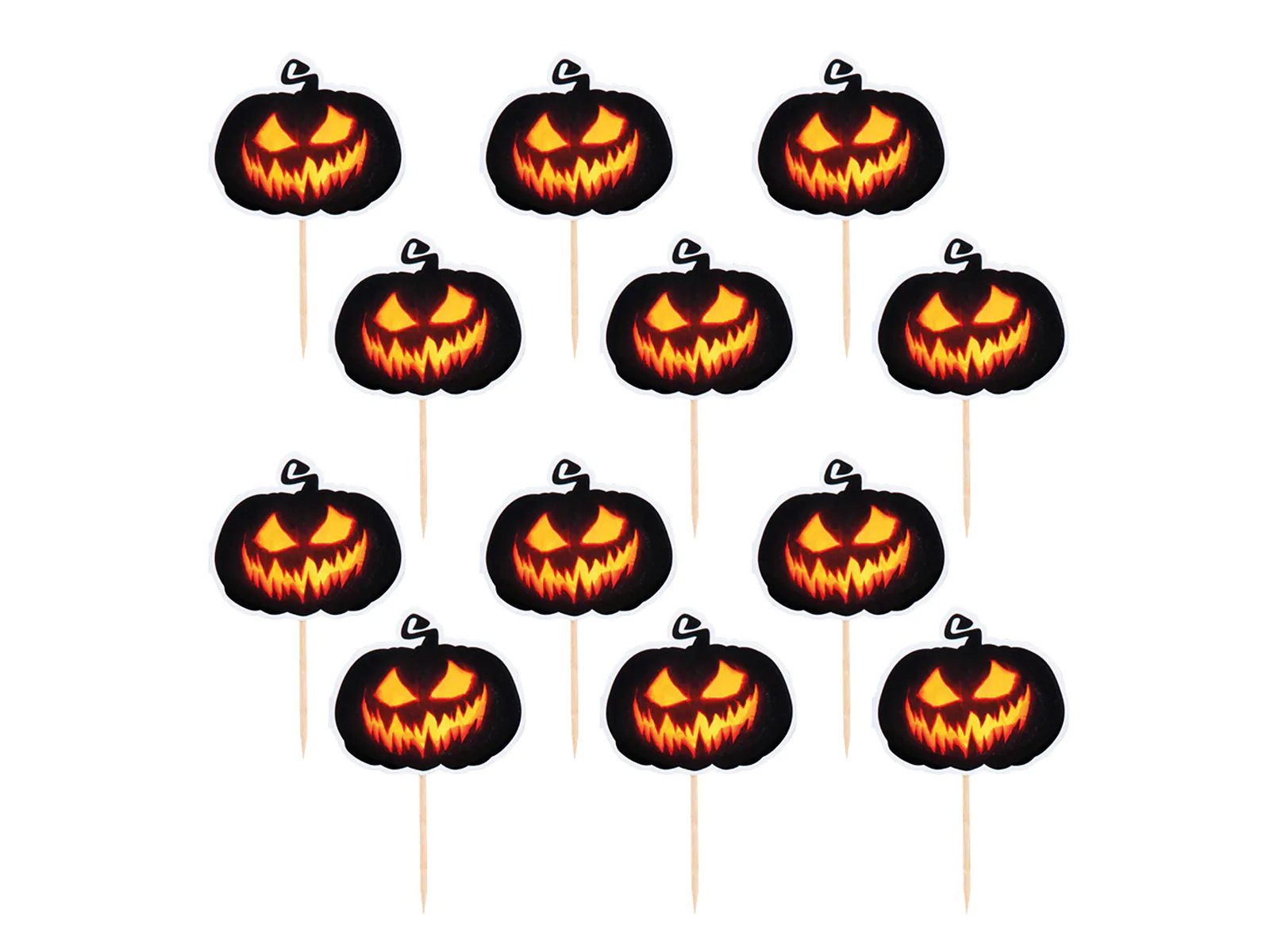 Pikery na ciasto Straszna Dynia - 12 szt.