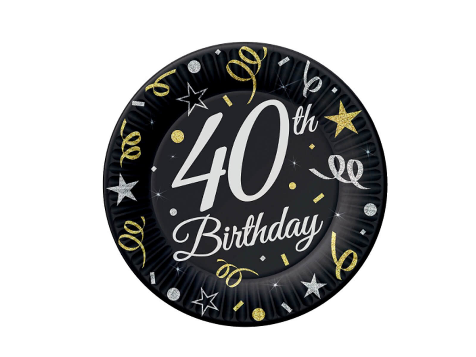 Talerzyki papierowe na czterdzieste urodziny czarne - 18 cm - 6 szt.
