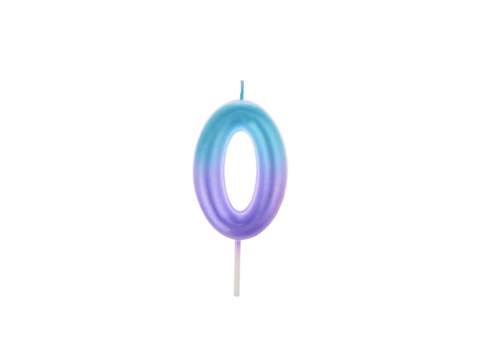 Świeczka cyferka fioletowo-niebieska ombre - 0 - zero