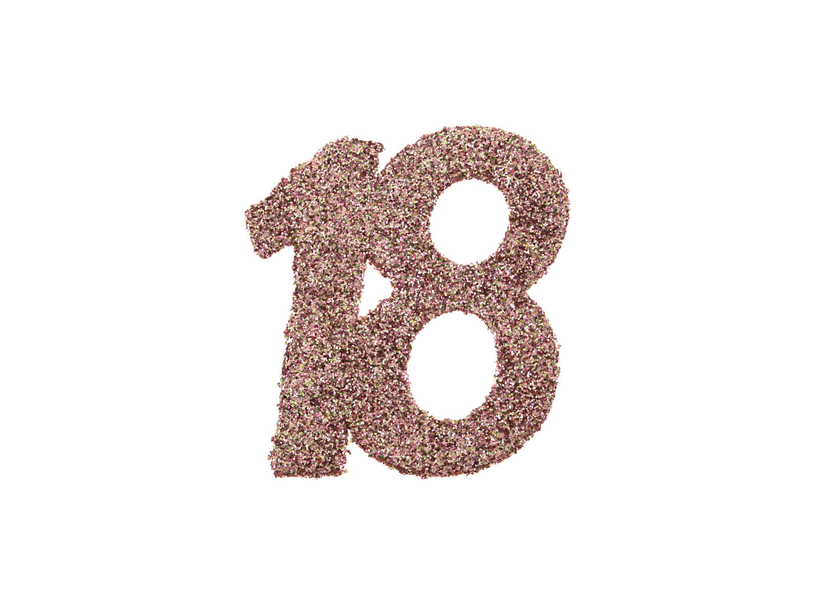 Brokatowa dekoracja stołu cyferka 18 różowe złoto - 6 cm - 6 szt.