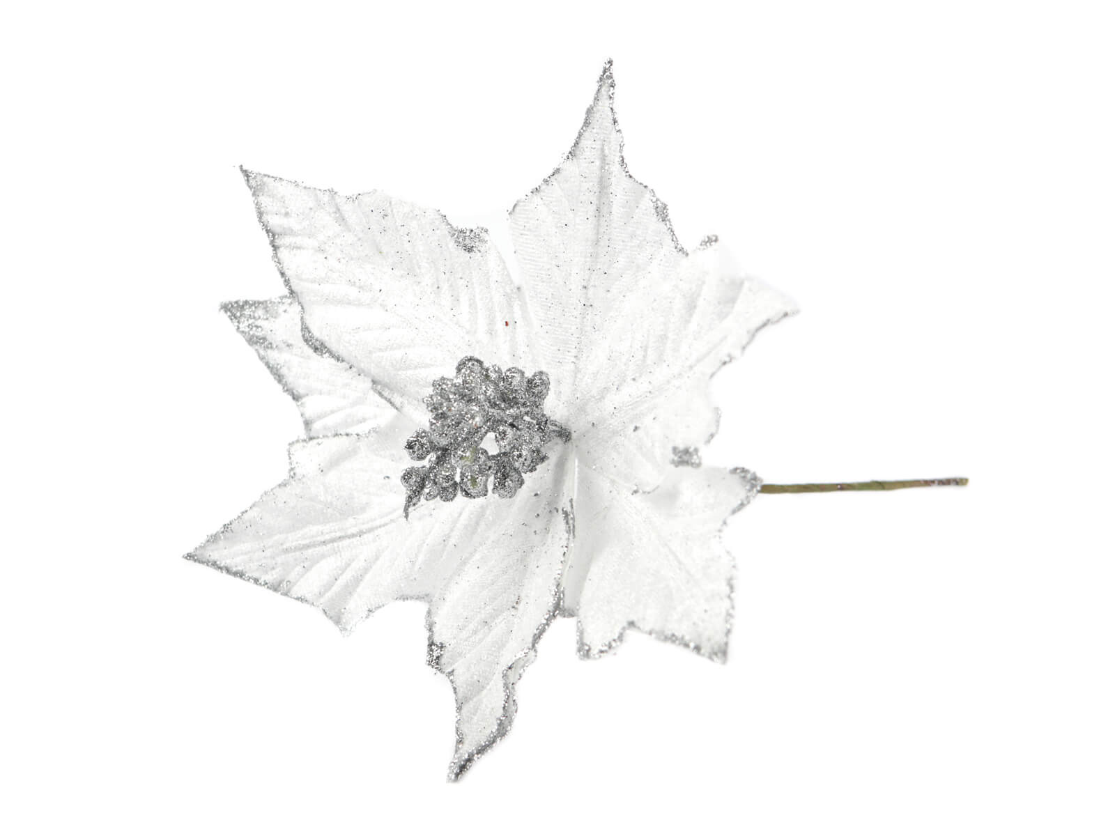 Dekoracja Gwiazda Betlejemska na piku biała ze srebrnym brokatem - 22 cm - 1 szt.