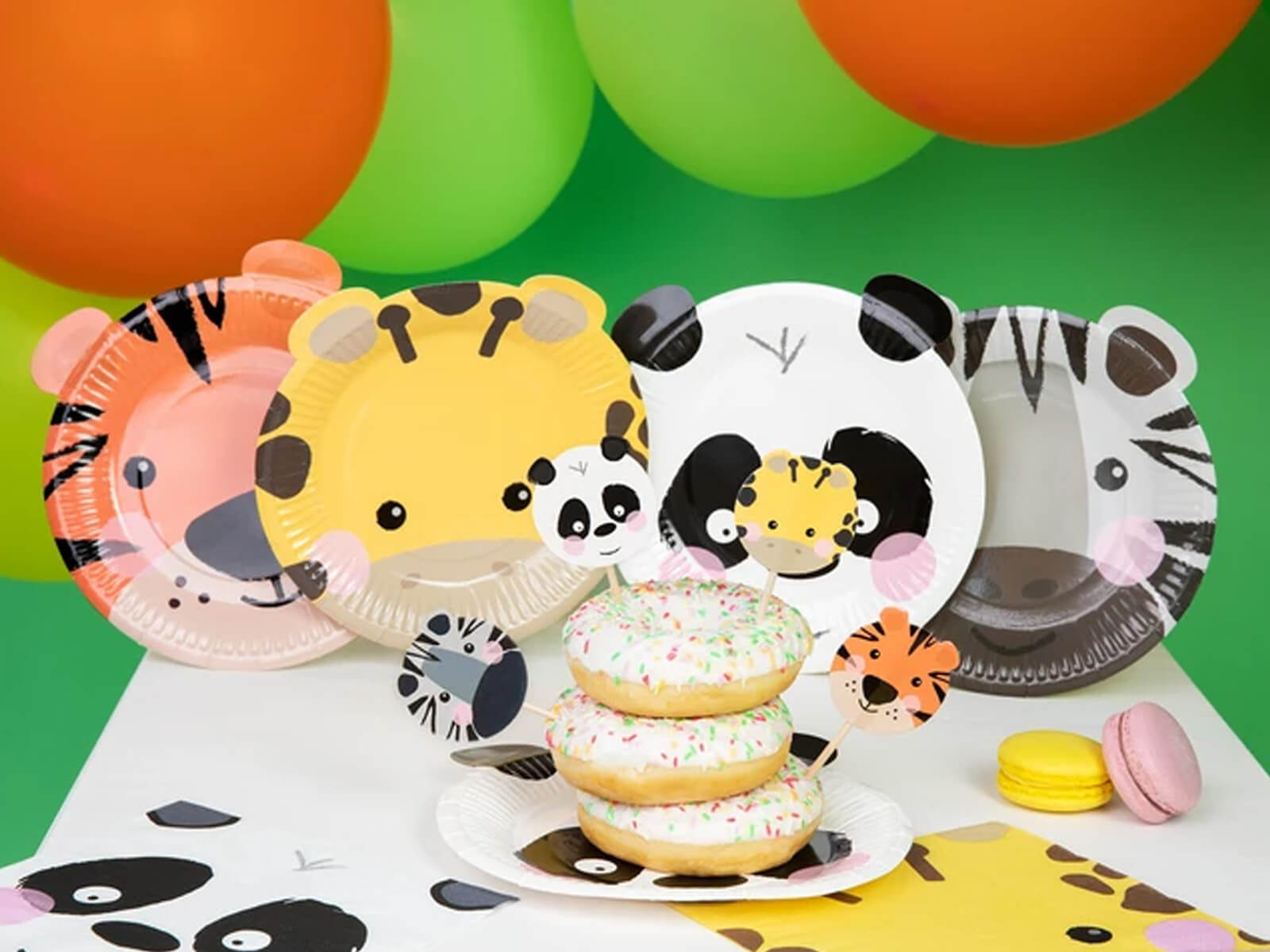 Spraw swojemu dziecku niezapomniane urodziny dzięki temu wspaniałemu zestawowi talerzyków urodzinowych! Te zabawne i stylowe talerzyki, przedstawiające cztery wesołe zwierzątka - pandę, tygrysa, zebrę i żyrafę - będą doskonałym towarzyszem wielogodzinnej zabawy. Talerzyki mają średnicę 18 cm, dzięki czemu idealnie nadają się do przechowywania smacznych smakołyków, takich jak ciasta, babeczki i przekąski. Te urocze zwierzęta z zoo sprawią, że każde dziecko poczuje się jak na egzotycznym safari! Każdy talerzyk jest zapakowany w zestawach po cztery sztuki i ma żywe kolory, które są odporne na blaknięcie. Przygotuj się na szaloną zabawę z tymi ekscytującymi urodzinowymi talerzami Zwierzęta!