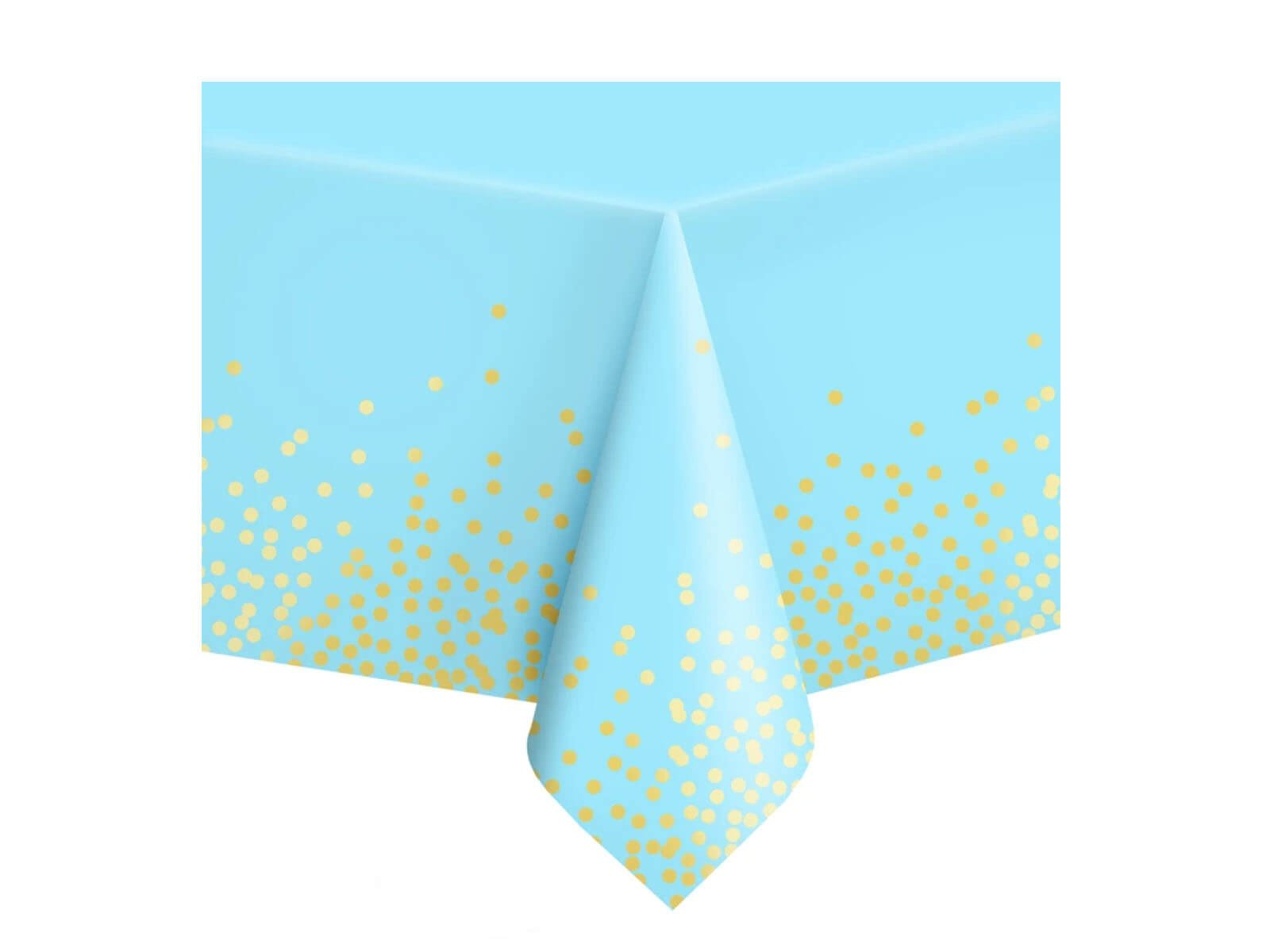 Obrus urodzinowy niebieski w złote kropki - 137 x 274 cm - 1 szt.
