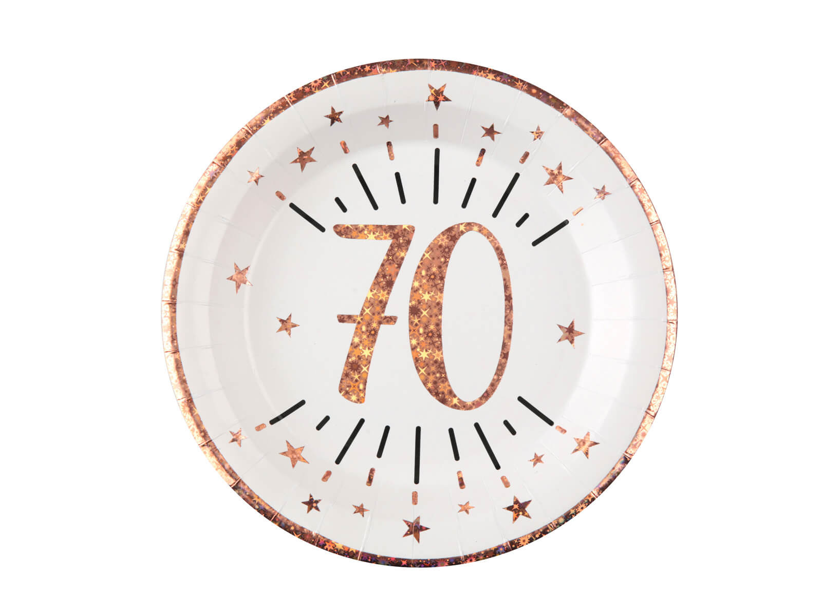 Talerzyki papierowe na siedemdziesiąte urodziny Sparkling różowe złoto - 22,5 cm - 10 szt.