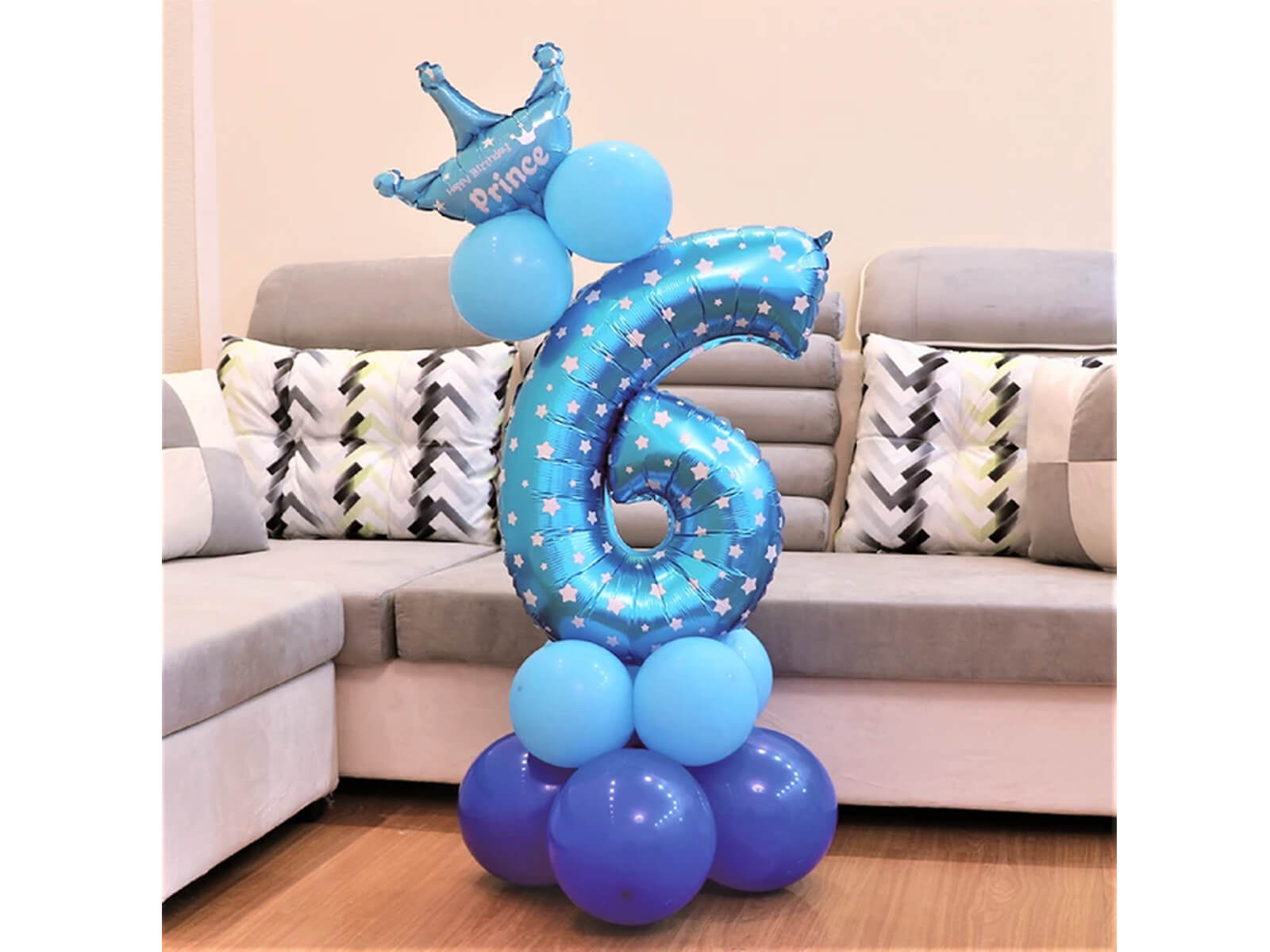 Zestaw balonów z cyfrą sześć niebieski - 15 szt.