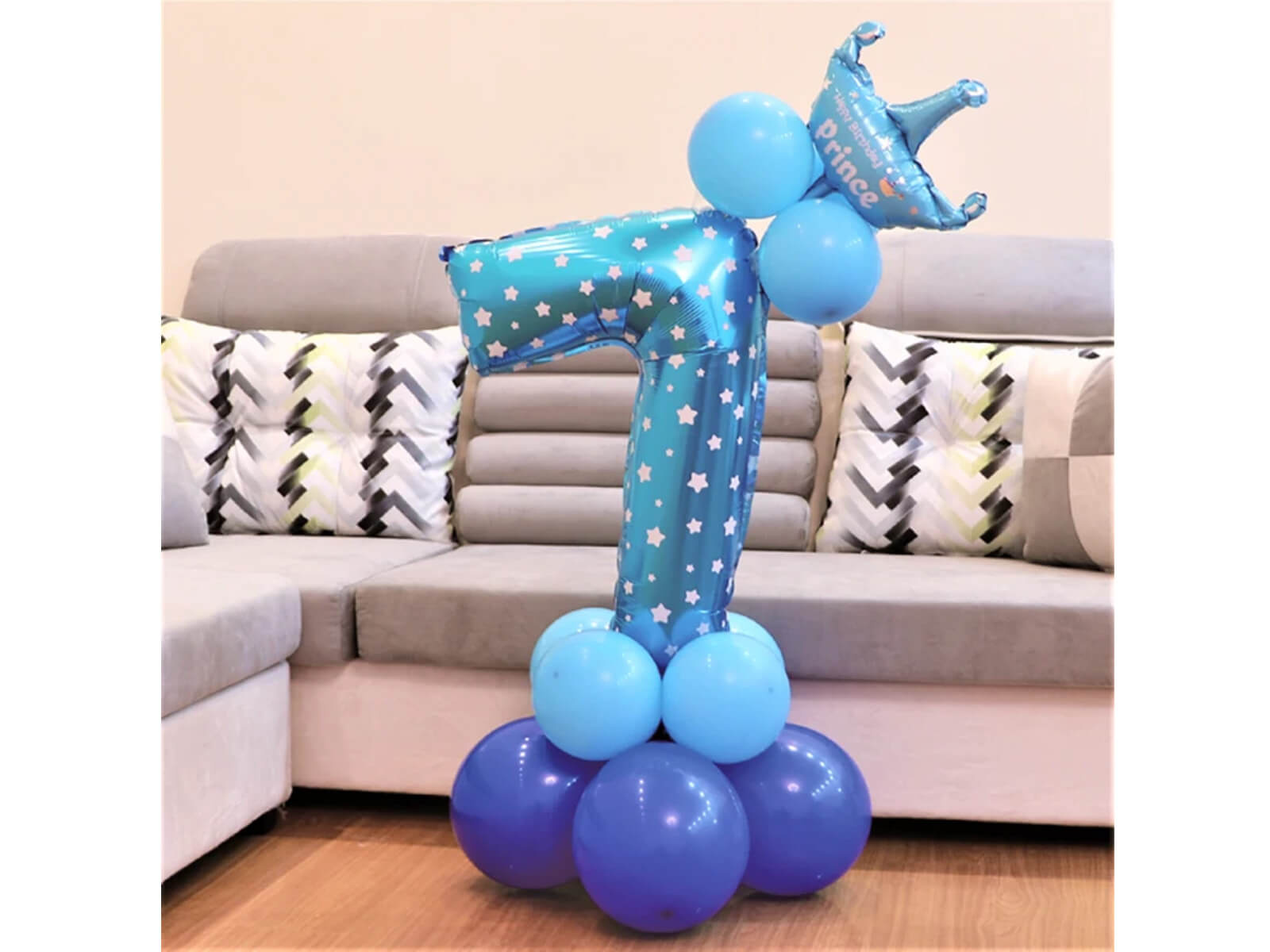Zestaw balonów z cyfrą siedem niebieski - 15 szt.