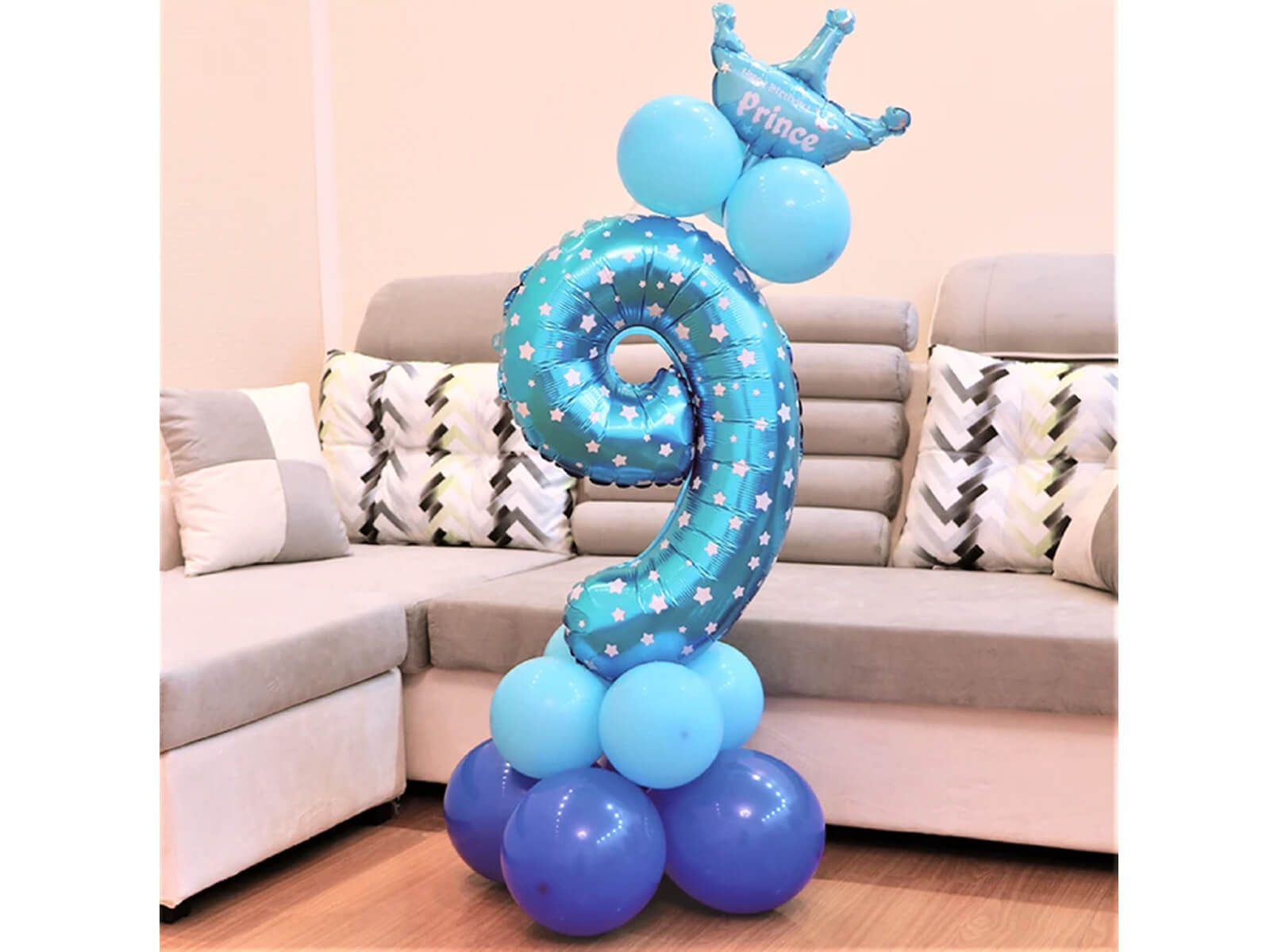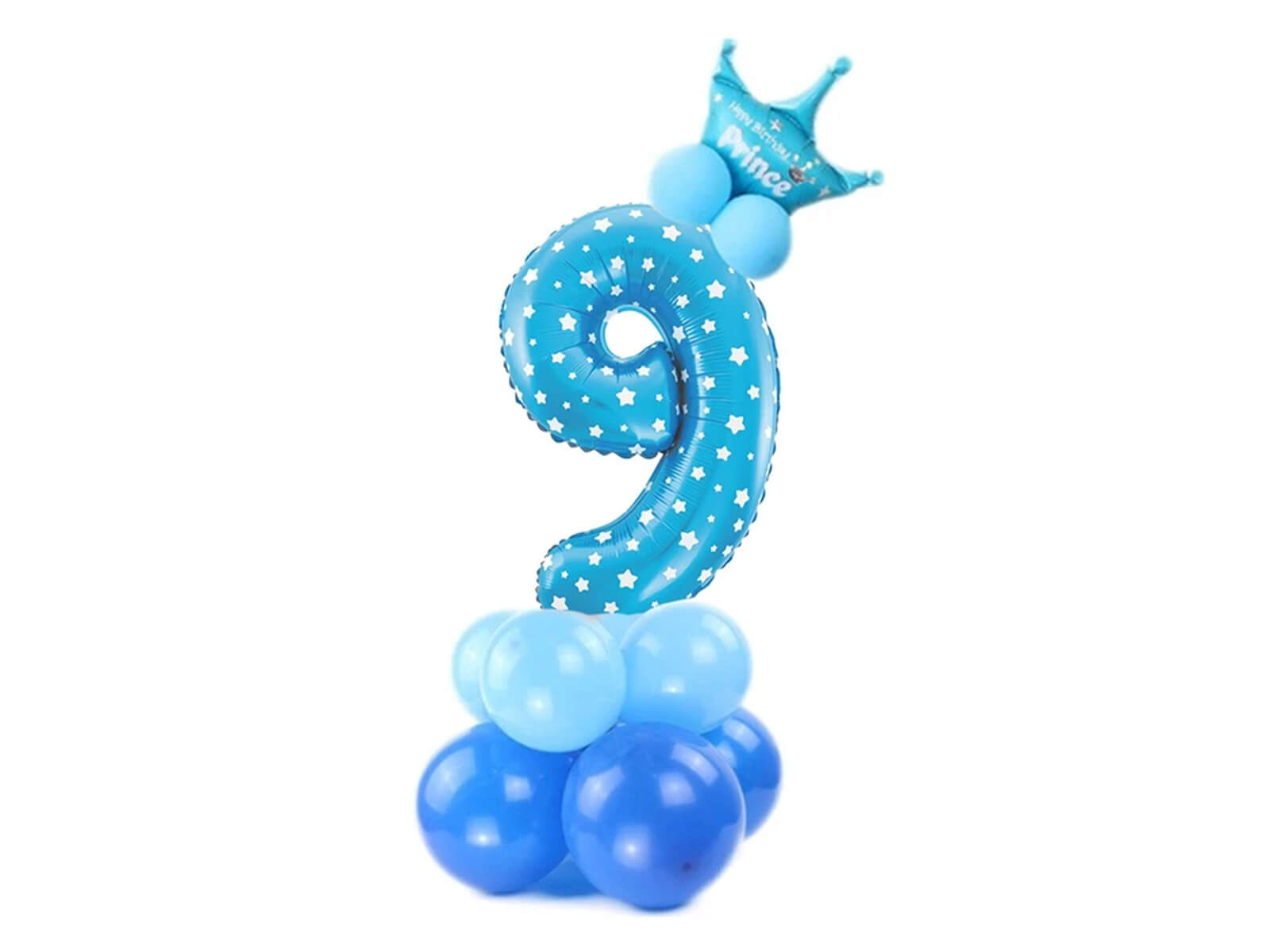 Zestaw balonów z cyfrą dziewięć niebieski - 15 szt.