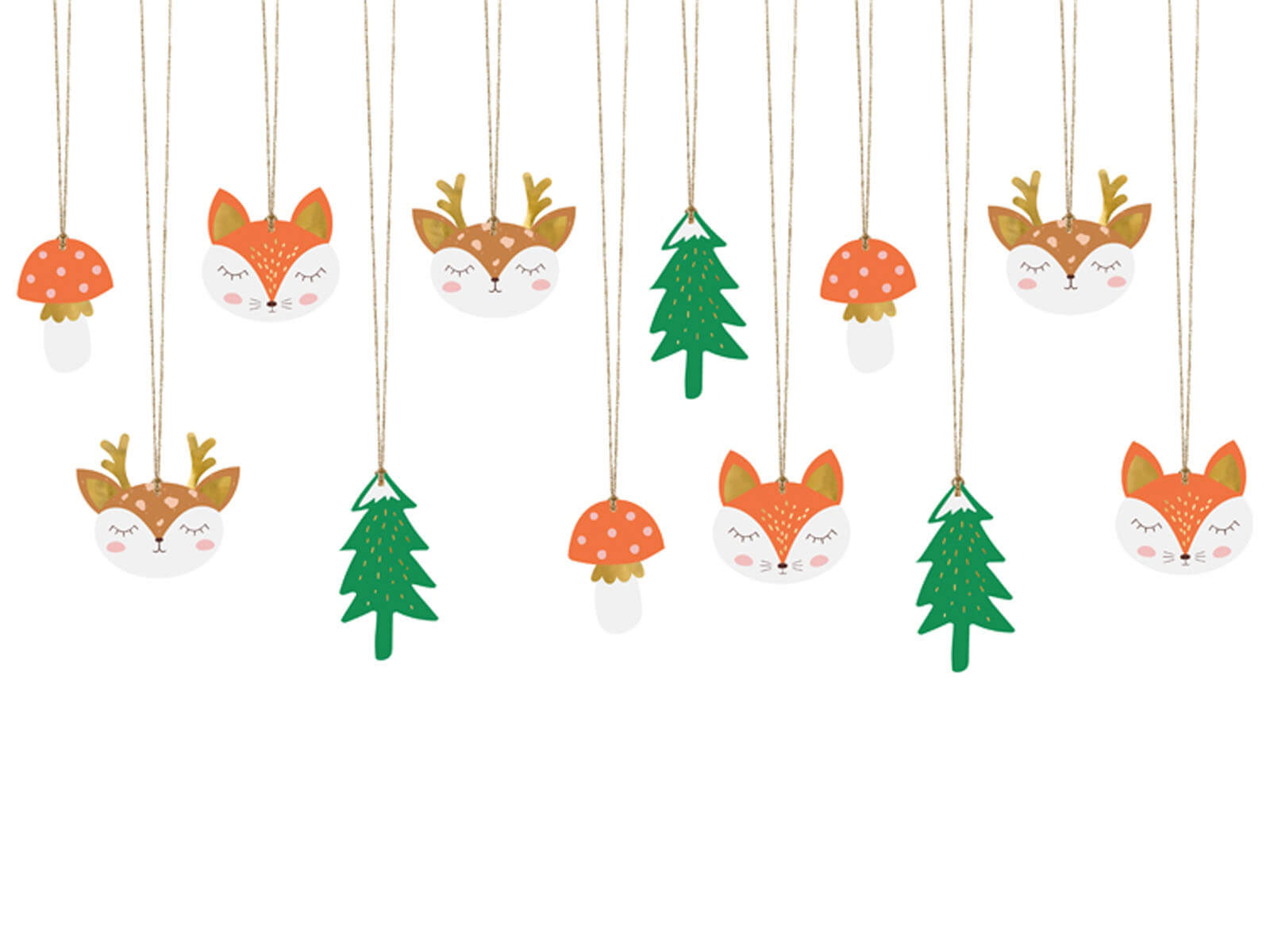 Odkryj magiczną atmosferę świąt z naszym zestawem zawieszek do prezentów "Las". Każda zawieszka została wyczarowana z trwałego papieru i przedstawia jeden z czterech uroczych wzorów: głowę jelonka, głowę liska, choinkę oraz grzybka. Ten zestaw to idealny wybór do dekoracji prezentów świątecznych, dodając im osobistego i leśnego charakteru.