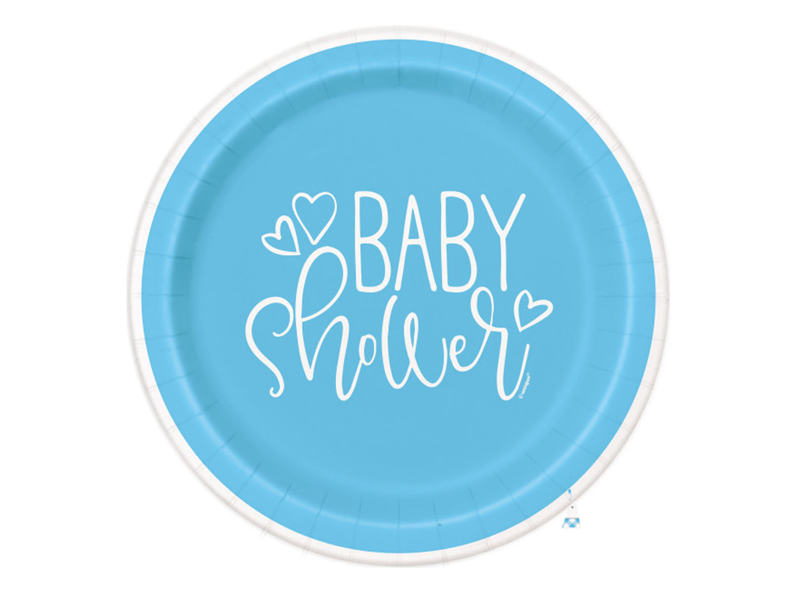 Talerzyki papierowe na baby shower błękitne - 23 cm - 8 szt.