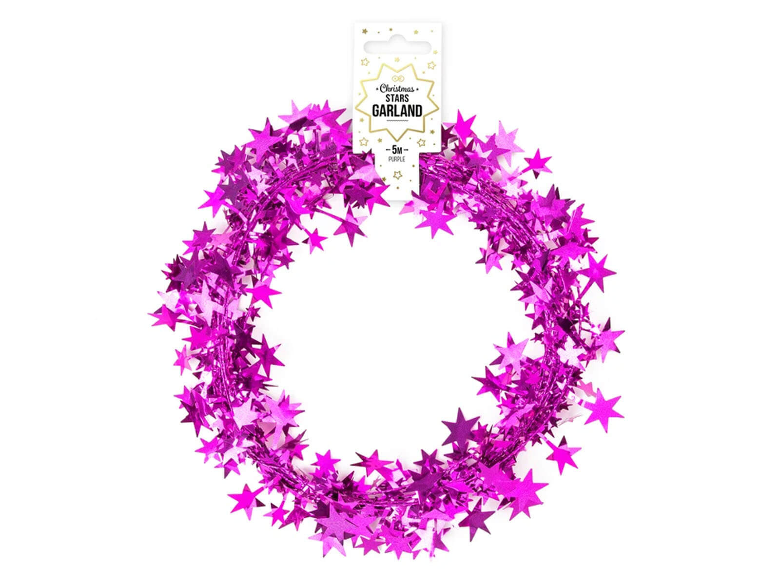 Odkryj urok świątecznych dekoracji z naszym fioletowym łańcuchem z gwiazdkami. Ta elegancka girlanda foliowa, licząca aż 5 metrów długości, jest ozdobiona gwiazdkami o wysokości do 3 cm, idealnie wpisującymi się w świąteczną atmosferę. Fioletowy kolor dodaje oryginalności i nowoczesnego akcentu do tradycyjnych dekoracji.