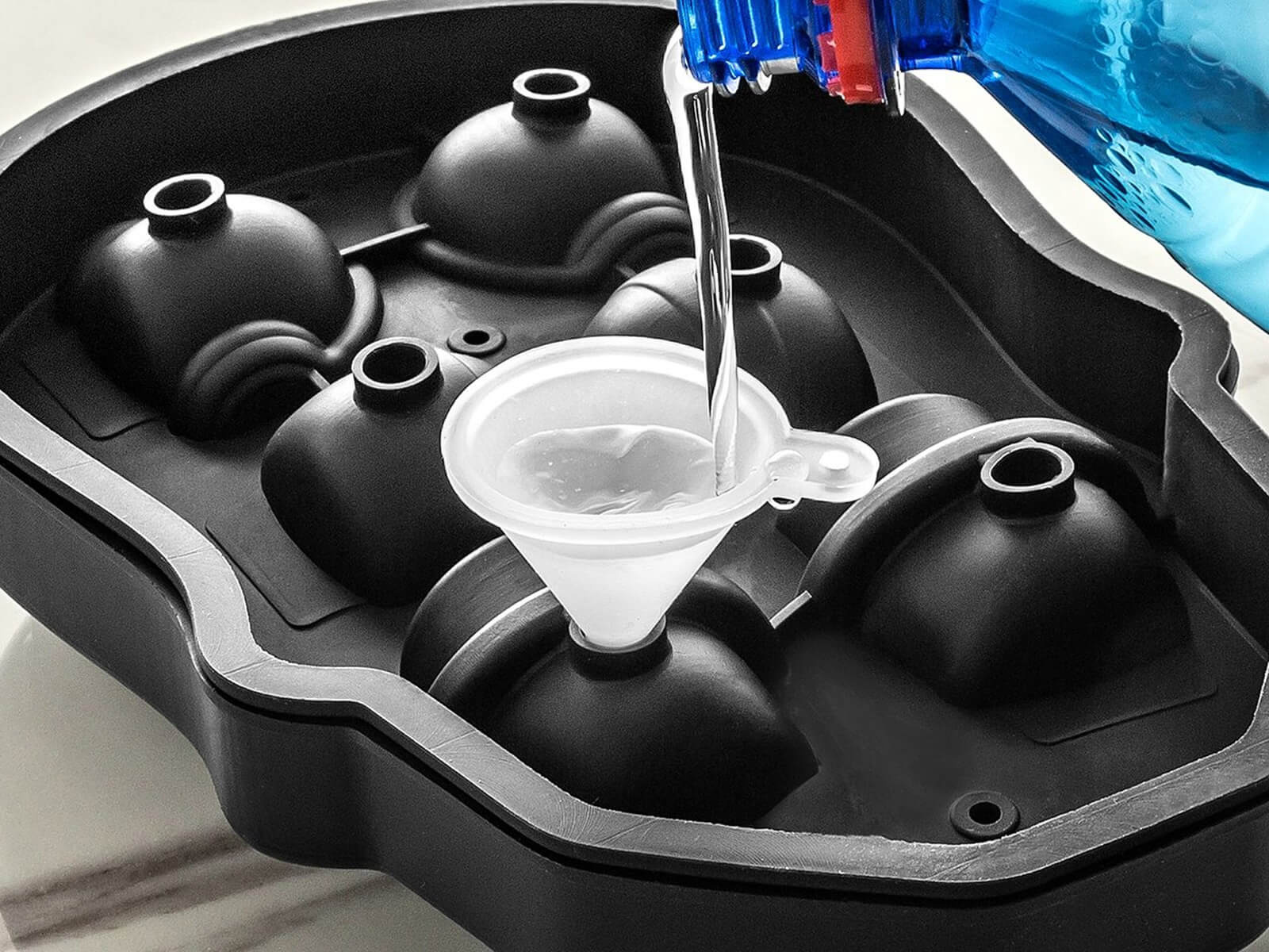 Lejek ułatwia wlanie wody do foremki, wystarczy złożyć dwie części razem i wlać wodę przez lejek od góry przez dziurki.
