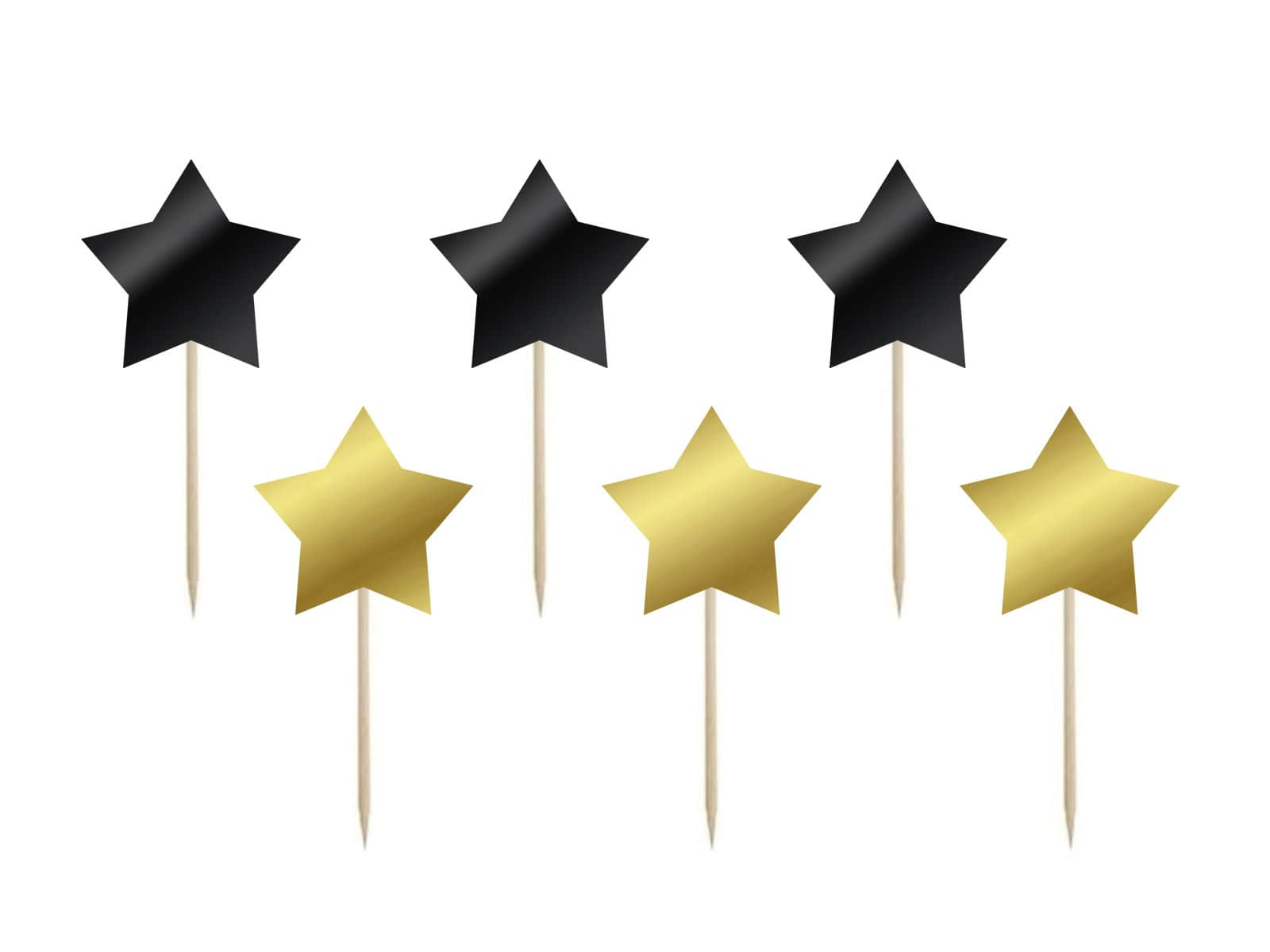 Pikery gwiazdki czarne i złote - 7 cm - 6 szt.