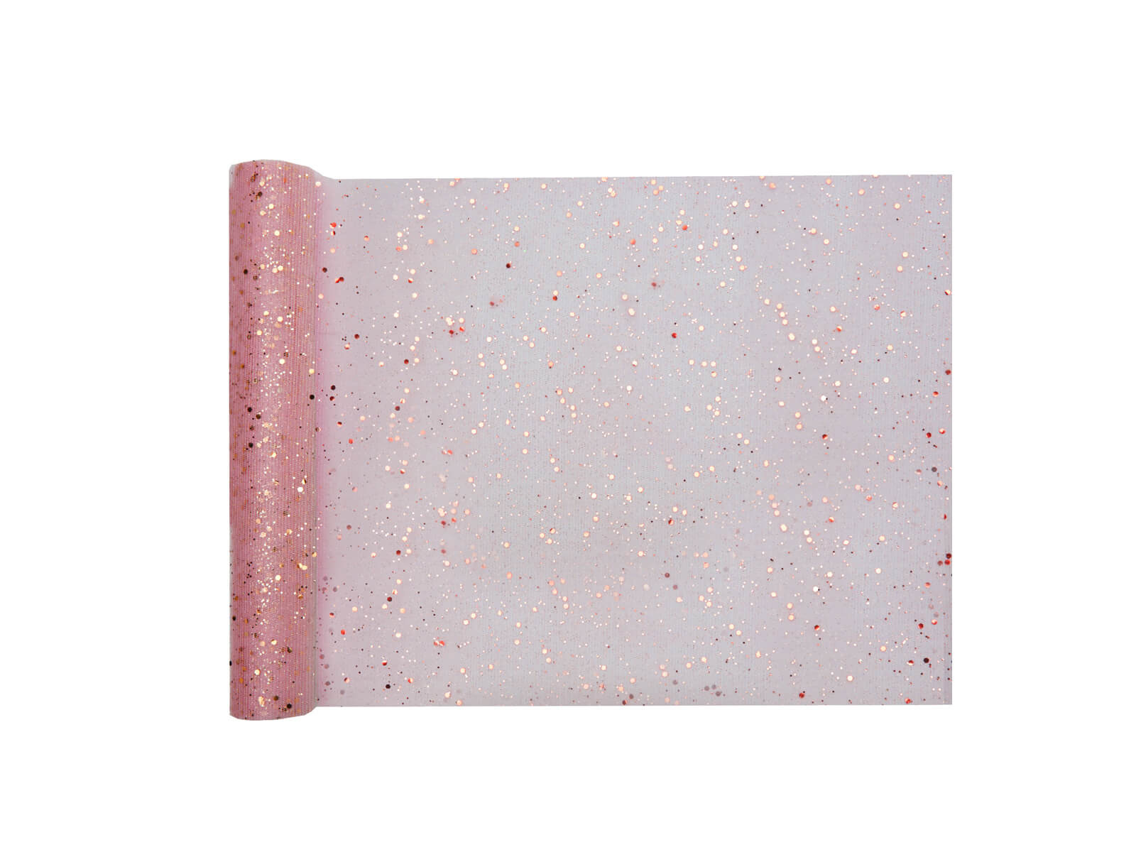 Dekoracja bieżnik brokatowy na stół - różowe złoto - 30 cm x 5 m - 1 szt.