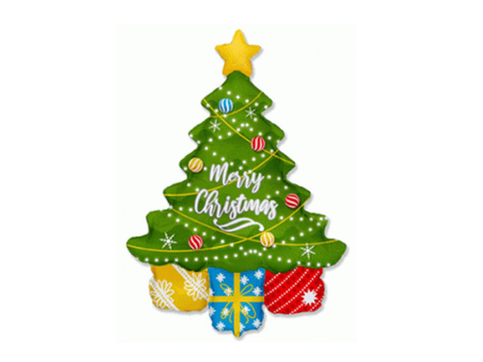 Szukasz wyjątkowej dekoracji na Boże Narodzenie? Nasz Balon foliowy Choinka to perfekcja w każdym detalu! Zaprojektowany z myślą o najdrobniejszych szczegółach, balon przedstawia bogato udekorowaną choinkę z prezentami i uroczym napisem "Merry Christmas".