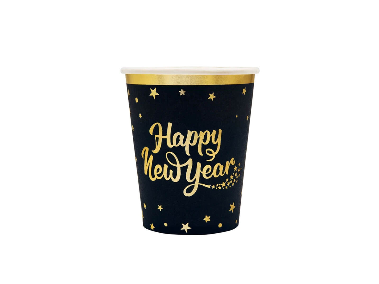 Kubeczki papierowe na sylwestra Happy New Year czarne - 266 ml - 6 szt.