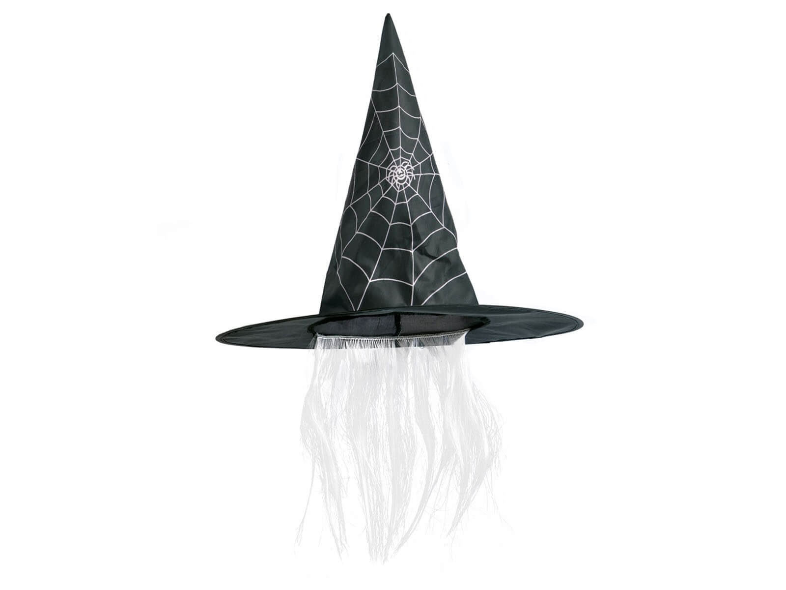 Częścią kapelusza są realistycznie wyglądające, białe włosy, które dodają charakteru i tajemniczości. Średnica kapelusza wynosi 38 cm, a wysokość 33 cm, co gwarantuje komfort noszenia i pasuje większości użytkowników.