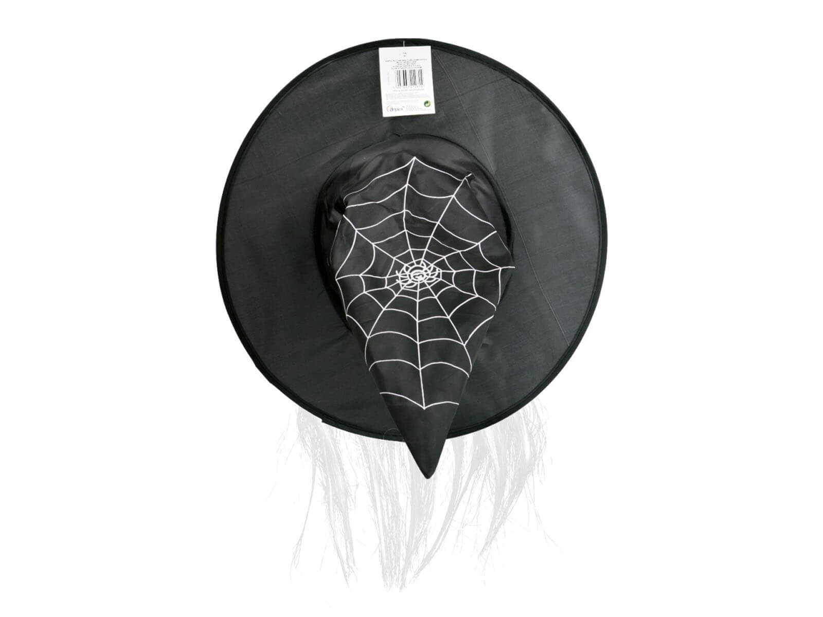 Zanurz się w świat magii i tajemniczych zaklęć z naszym Kapeluszem Czarownicy z włosami! Idealnie sprawdzi się jako dodatek do Twojego kostiumu na Halloween lub Andrzejki. Wykonany z dbałością o detale, w kolorze głębokiej czerni, ozdobiony motywem pajęczyny, dodaje autentyczności każdemu przebraniu.
