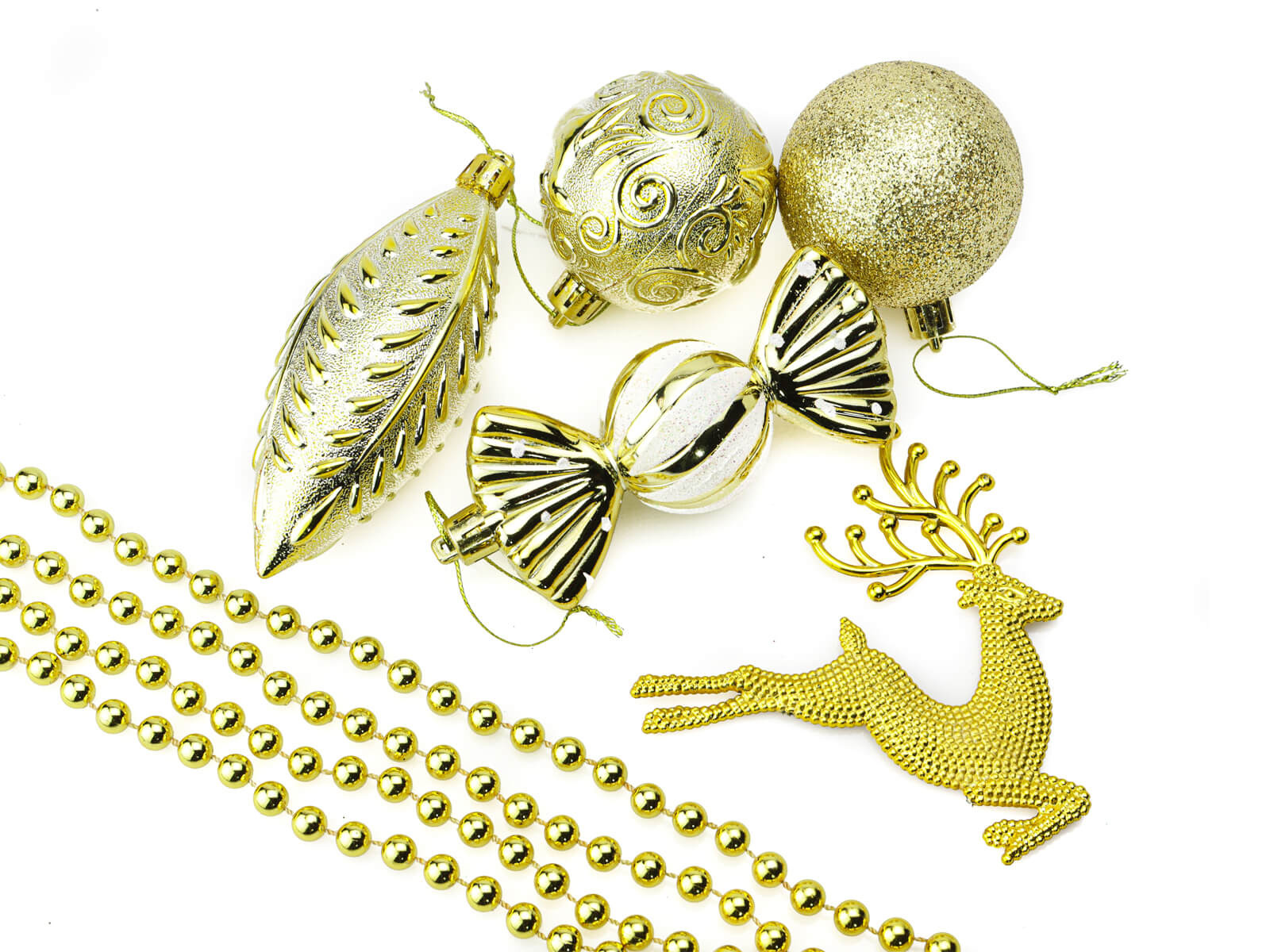 Zadbaj o to, aby Twoje święta były jeszcze piękniejsze dzięki naszemu zestawowi złotych dekoracji. Idealne do użycia w domu lub jako uroczy prezent.