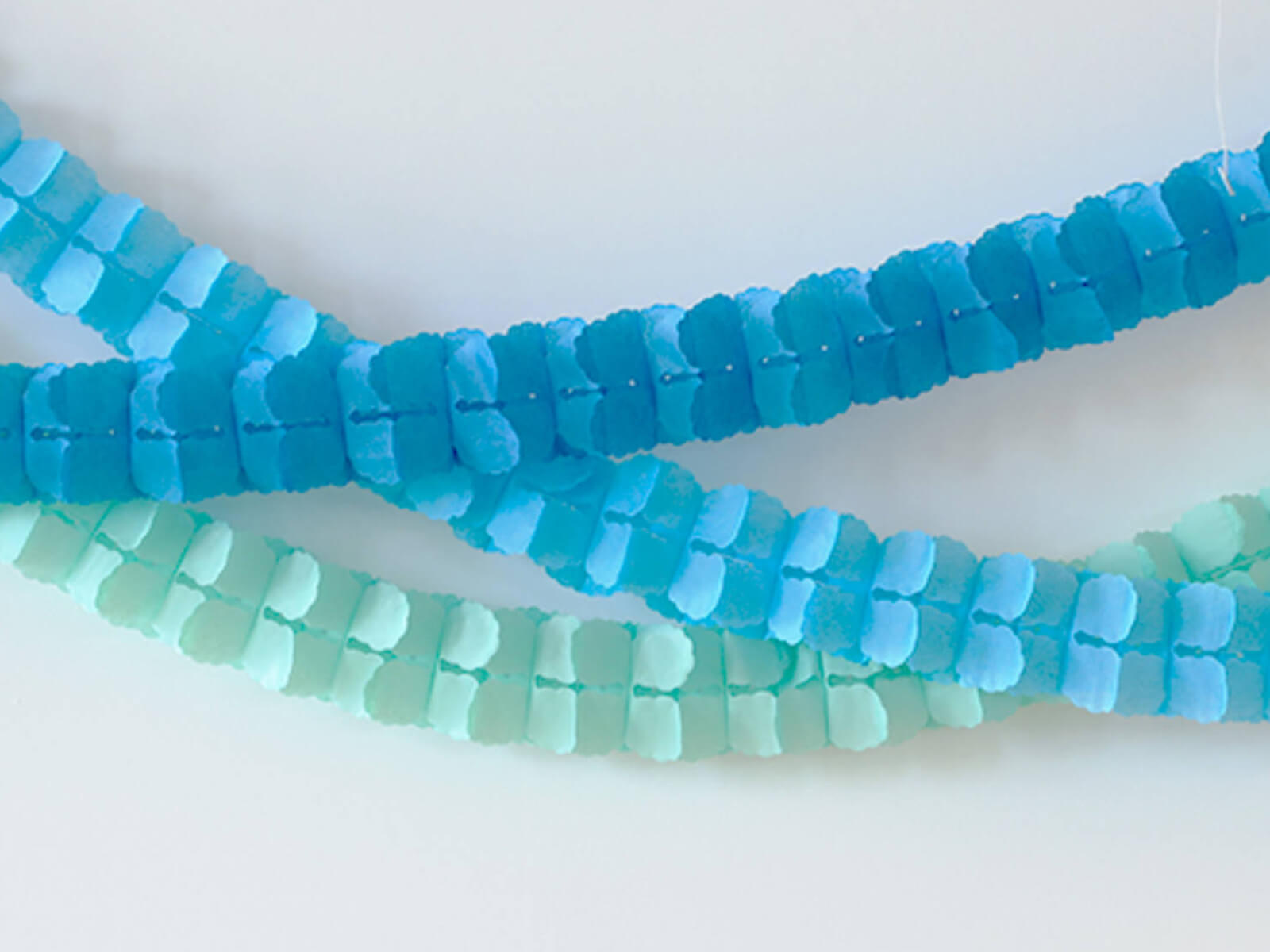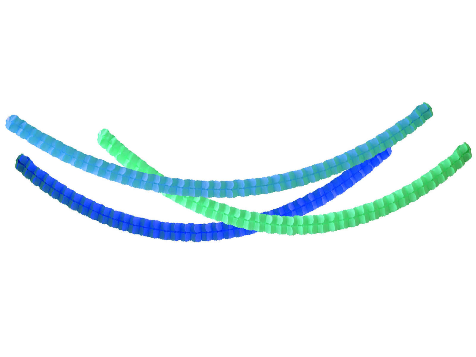 - Zestaw 3 girland w pięknych odcieniach jasnozielonego, błękitnego i niebieskiego. Te barwy idealnie dopełnią się nawzajem, tworząc harmonijną kompozycję.