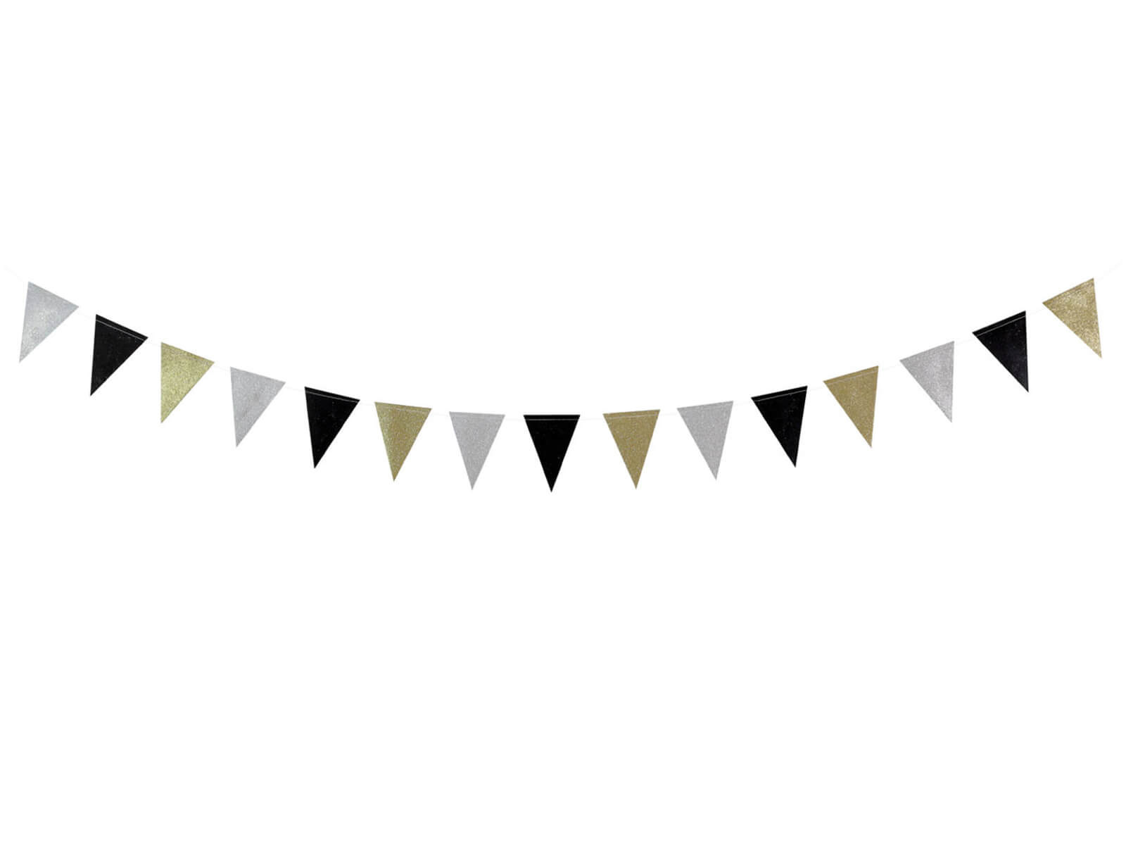 Baner ze złotymi, srebrnymi i czarnymi flagami - 260 cm - 1 szt.