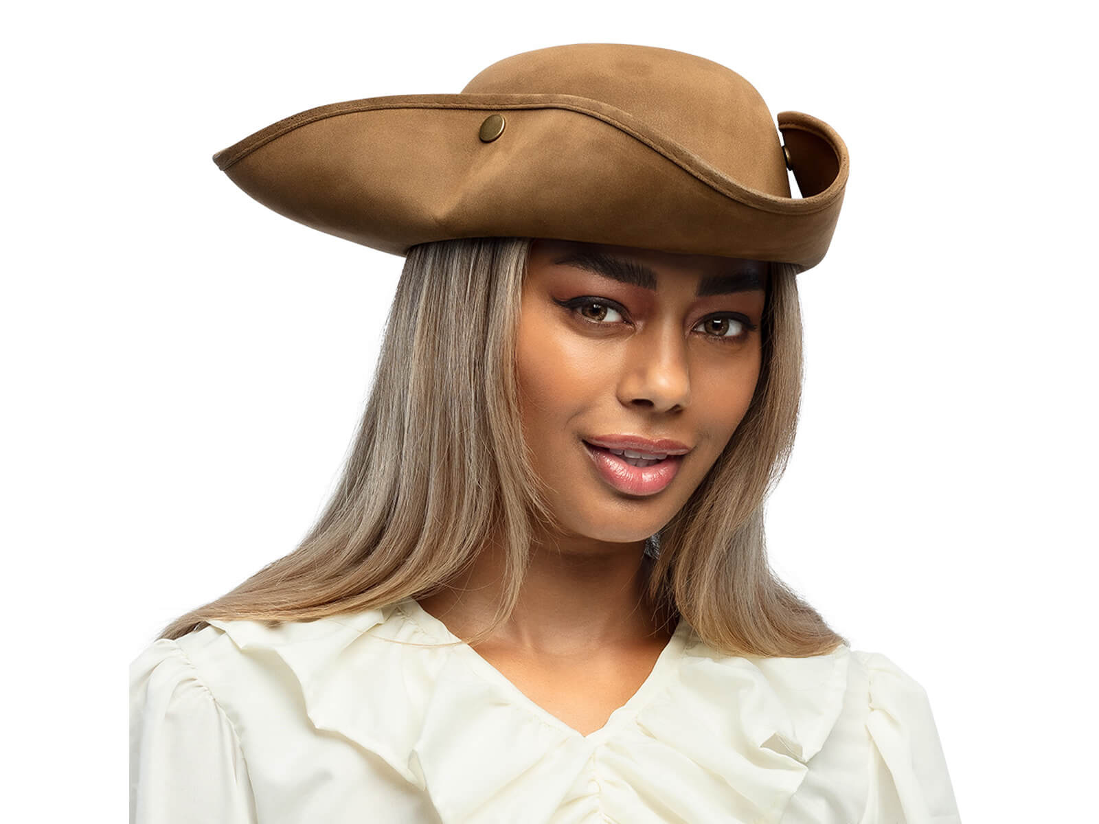 Ten unikatowy kapelusz został wykonany z materiału imitującego skórę, dzięki czemu prezentuje się niezwykle realistycznie i stylowo. Jego brązowy kolor dodatkowo podkreśla piracki charakter, sprawiając, że kapelusz ten stanie się nieodłącznym elementem Twojego kostiumu.