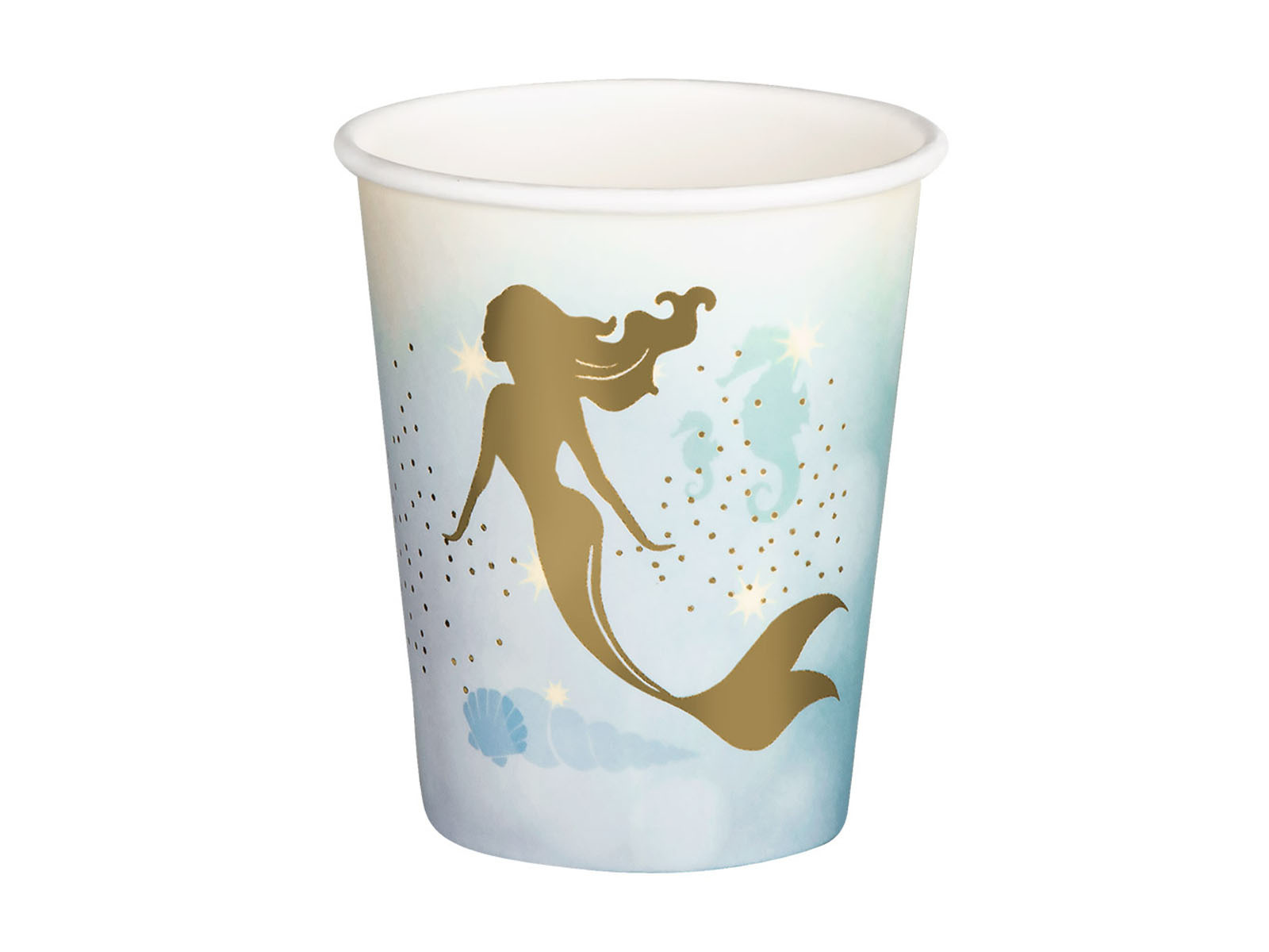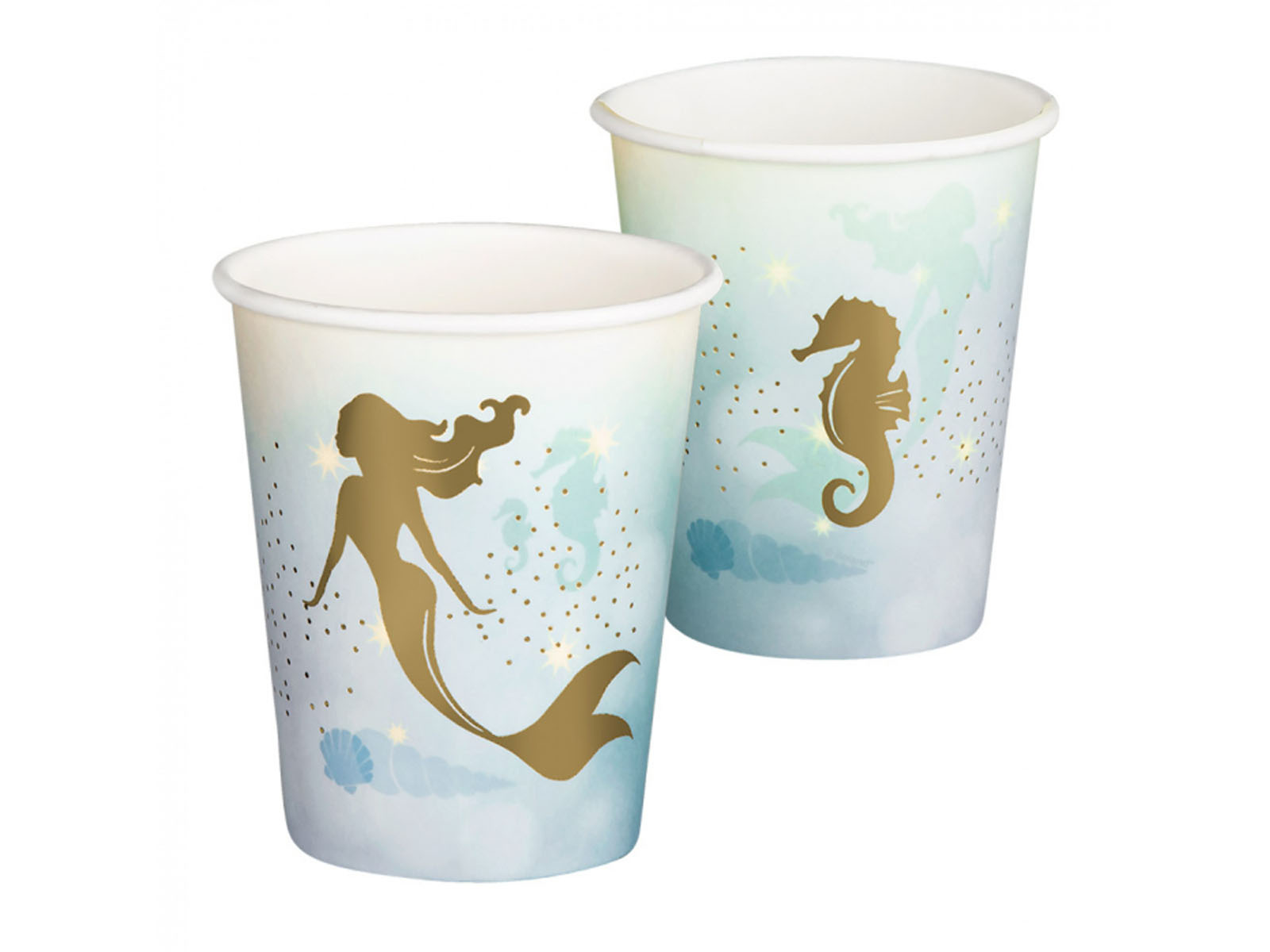 1. Papierowe kubeczki z motywem syrenki - ta wesoła i kolorowa grafika sprawi, że dzieci będą zachwycone swoimi urodzinami. Nie ma lepszego sposobu na wprowadzenie morskiego klimatu do Twojej imprezy niż przez te urocze kubeczki.