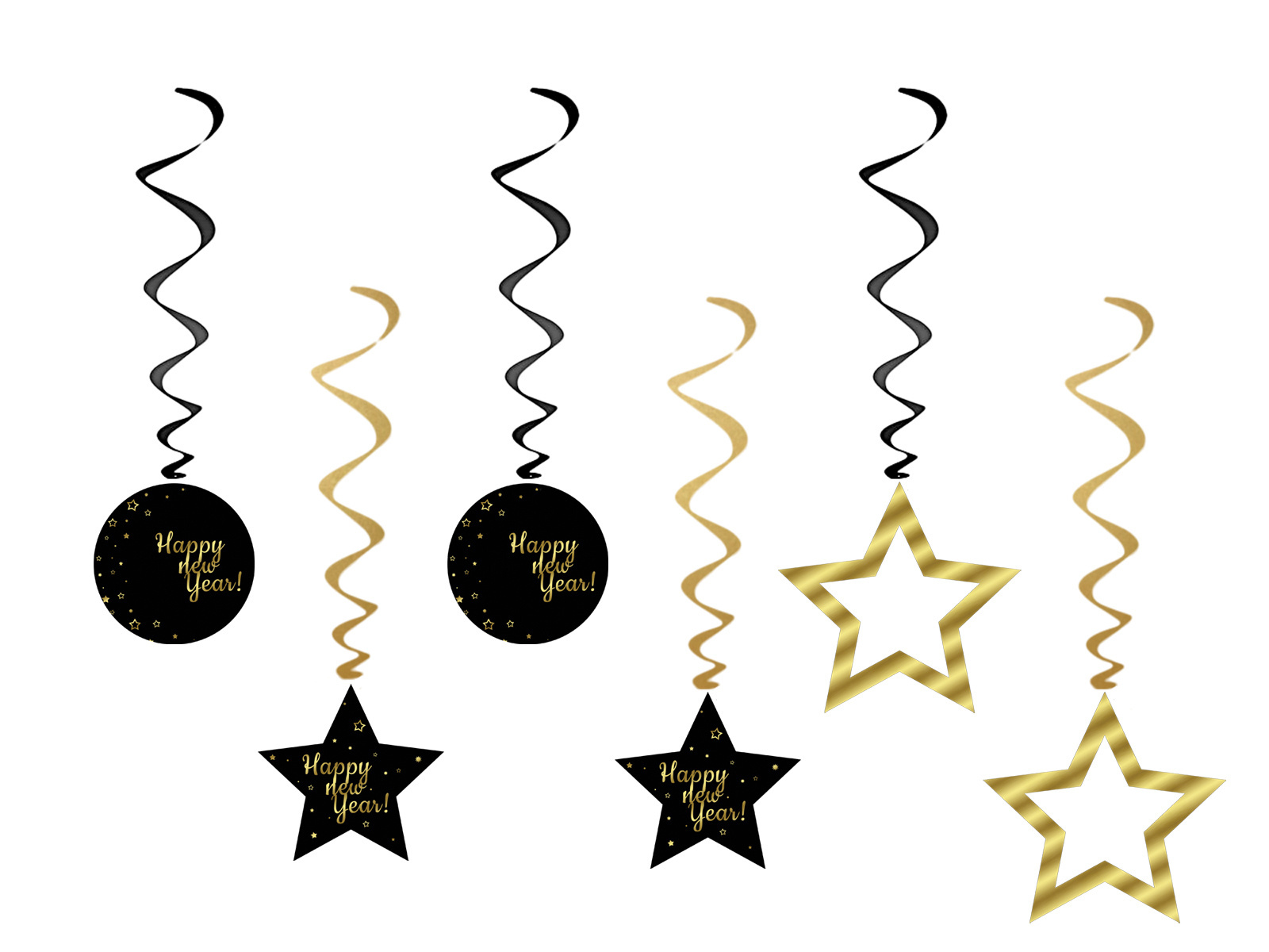 Dekoracja wisząca świderki Happy New Year - 6 szt.