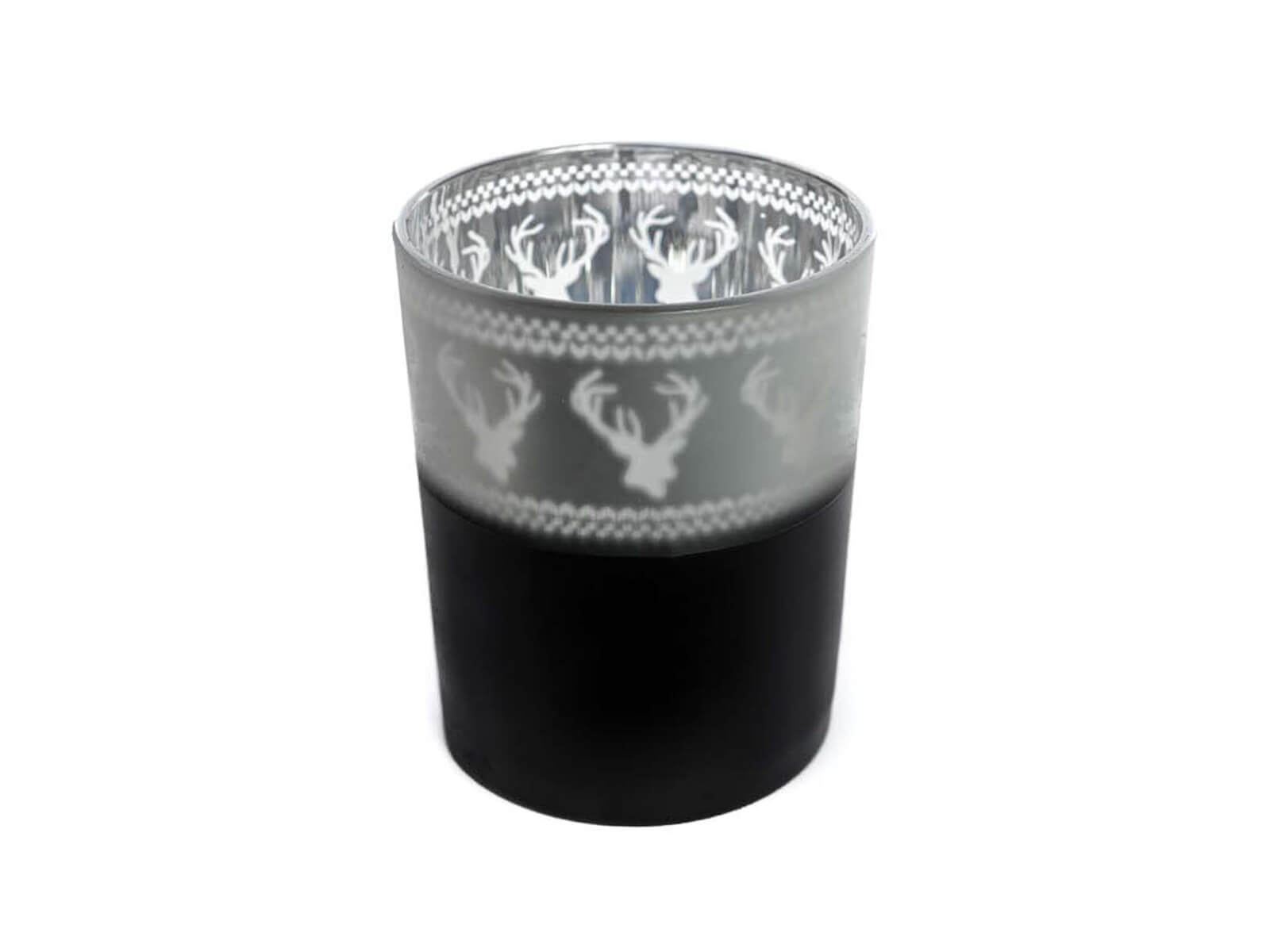 Szklany świecznik Renifer srebrny - 10 cm - 1 szt.