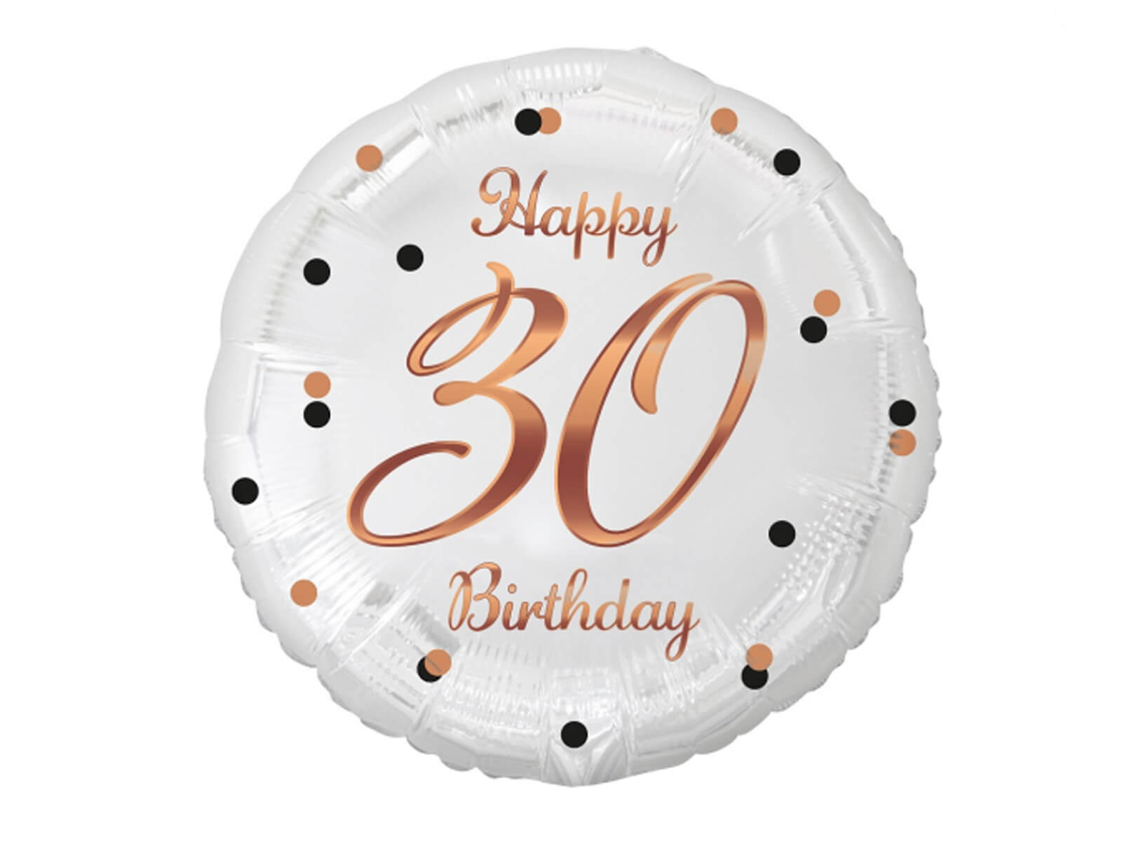 Balon foliowy na trzydziestkę z różowo złotym nadrukiem - 46 cm - 1 szt.