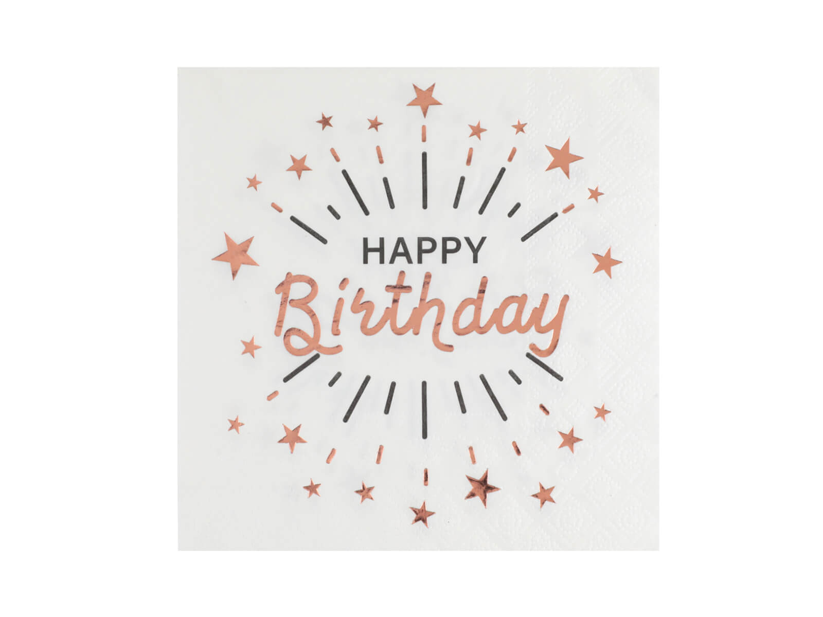Serwetki urodzinowe Happy Birthday białe - 33 cm - 10 szt.