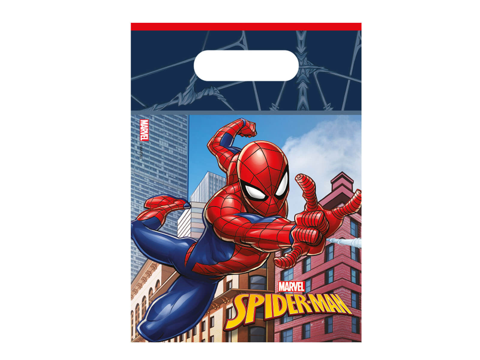 Przedstawiamy zestaw sześciu torebek foliowych z motywem Spiderman, idealny dla małych fanów tego superbohatera! Każda torebka zdobiona jest dynamicznymi akcji "Spiderman Crime Fighter", co sprawia, że są one atrakcyjne i pełne energii. To doskonały wybór na dziecięce urodziny czy tematyczne party.