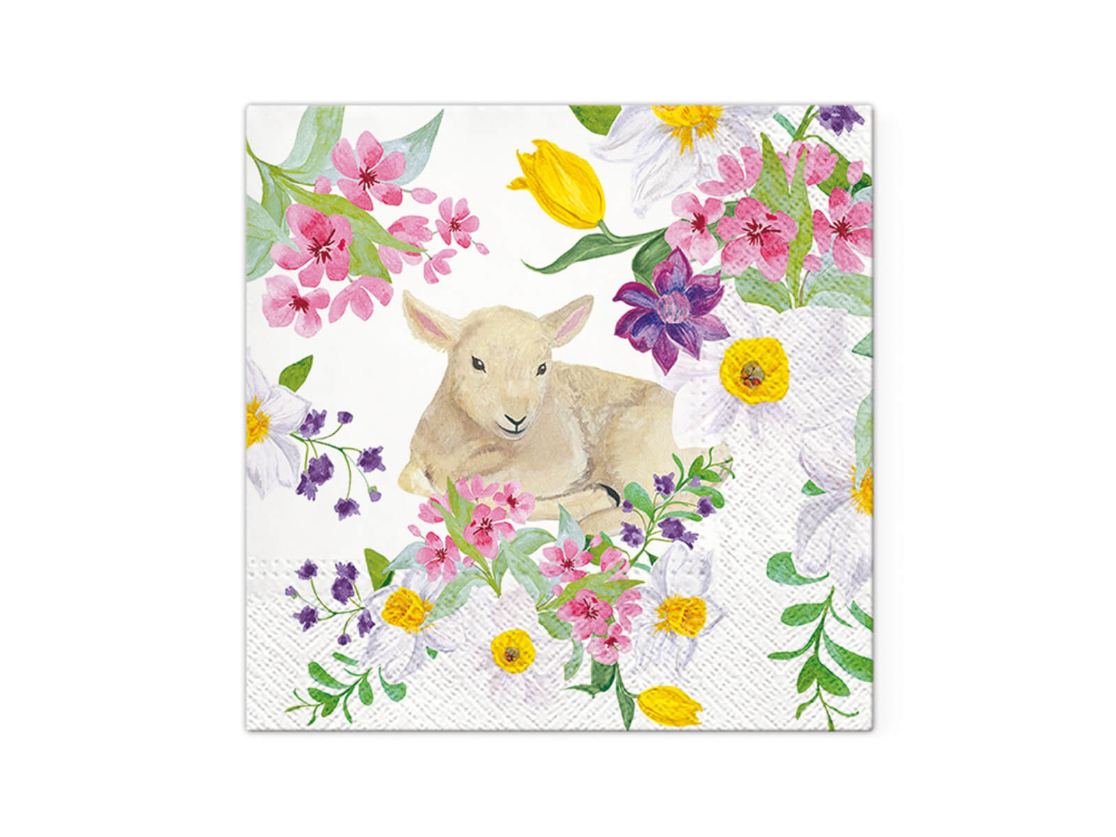 Serwetki wielkanocne Baranek w kwiatach - 33 cm - 20 szt.