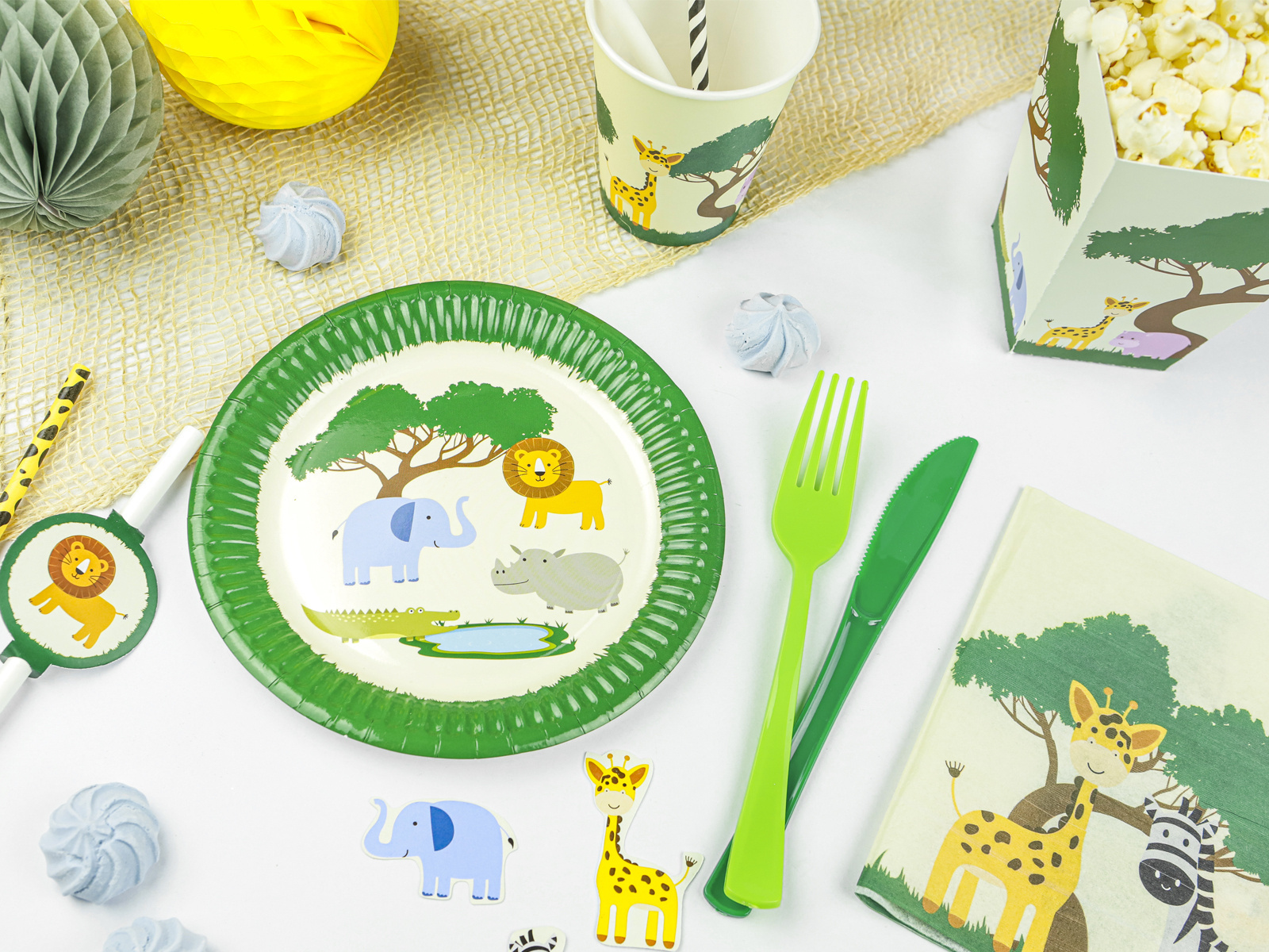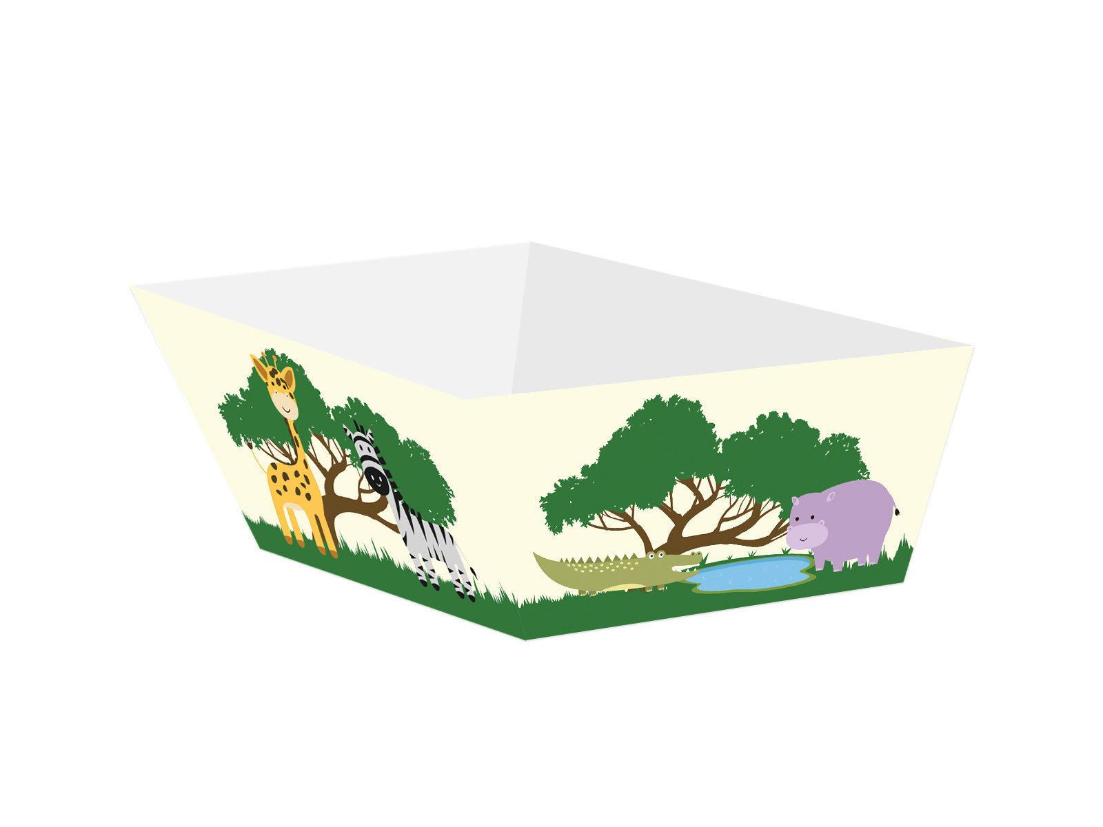 Podaruj swoim gościom prawdziwy smak dzikiej przyrody dzięki pudełkom na chipsy Safari! Te ekologiczne papierowe pudełka mają zabawny motyw Safari, który idealnie nadaje się na każdą imprezę na świeżym powietrzu. Nie tylko na chipsy, możesz wypełnić te pudełka lub miseczki popcornem lub innymi zabawnymi przekąskami! Każdy zestaw zawiera cztery pudełka na chipsy w wygodnym rozmiarze 10x10 cm u podstawy i 13x13 cm na górnej krawędzi. Ponadto mają 6 cm wysokości, więc możesz je hojnie wypełnić smakołykami bez obawy, że się przepełnią. Bez względu na to, czy organizujesz urodziny w stylu zwierzęcym, czy fiestę na świeżym powietrzu, pudełka na chipsy Safari natychmiast ożywią wystrój imprezy - i sprawią, że kubki smakowe wszystkich będą chciały się napić!