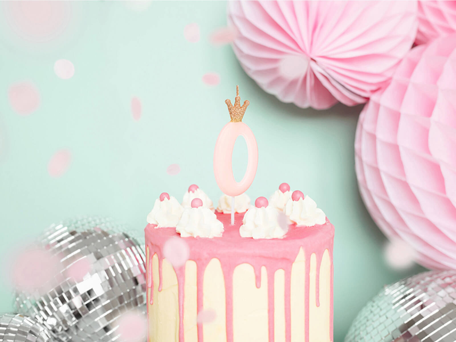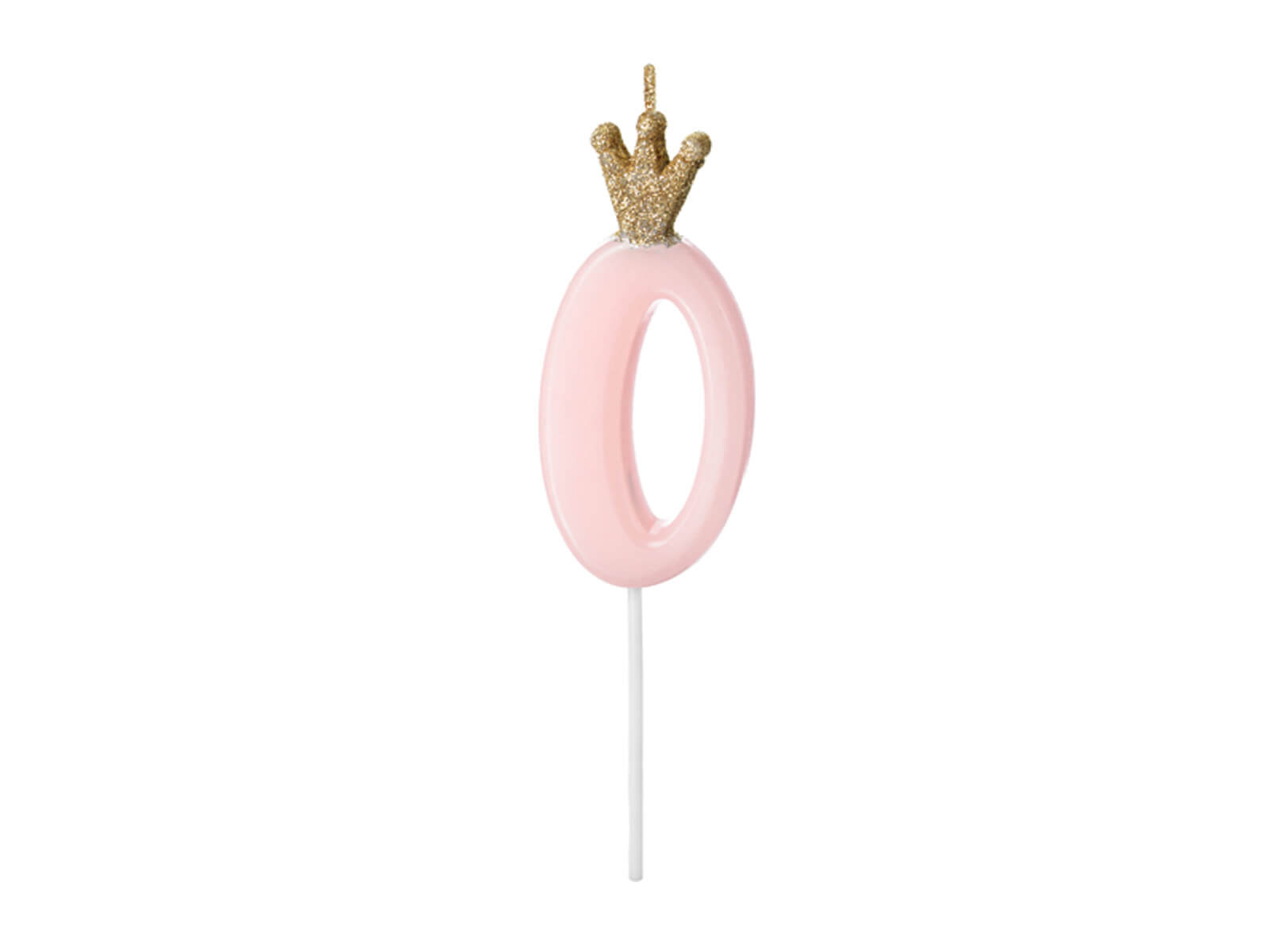 Świeczka cyferka zero jasnoróżowa z koroną - 0 - 1 szt.
